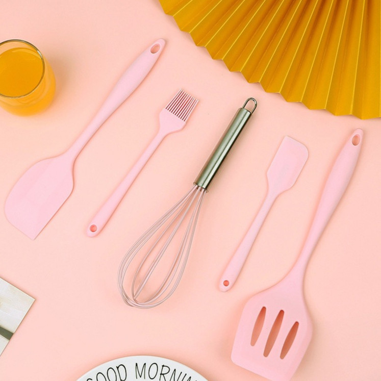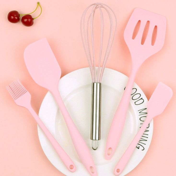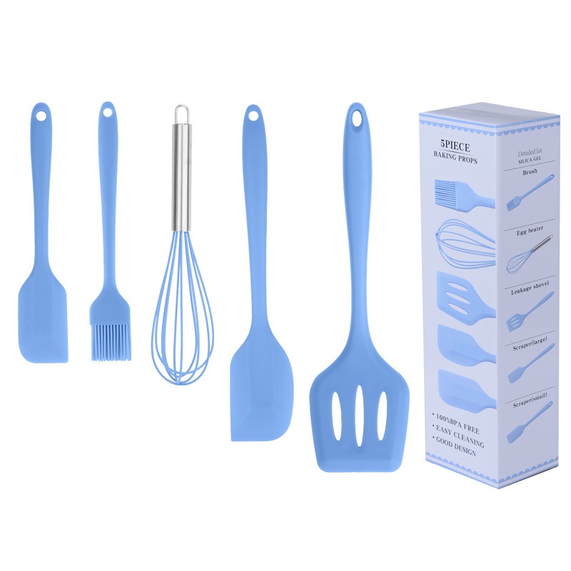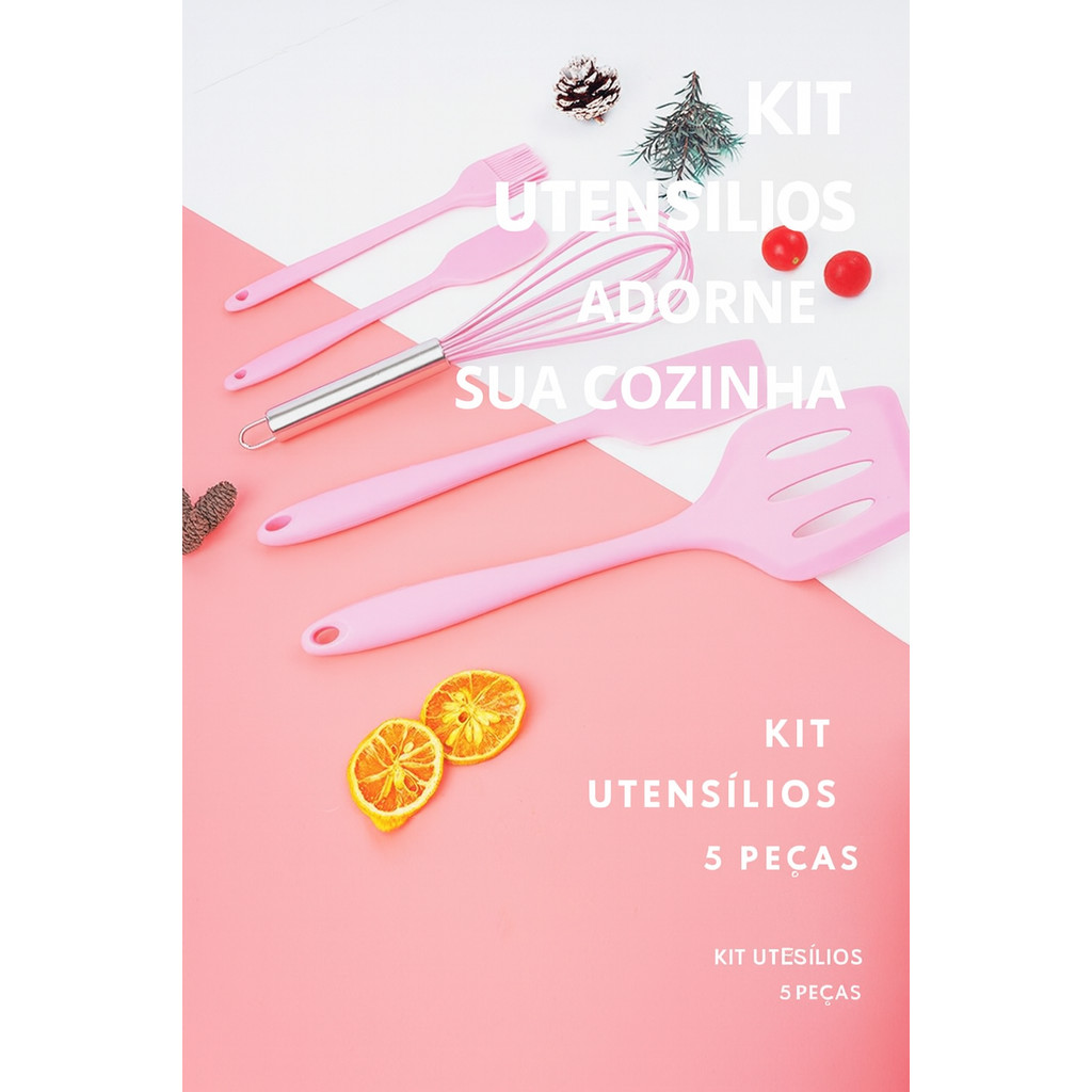 Kit 5 Peças Utensílios de Cozinha Silicone Colher Espátula Fue Espátula Pequena Pincel