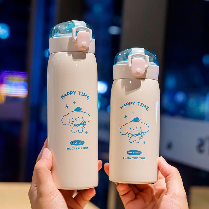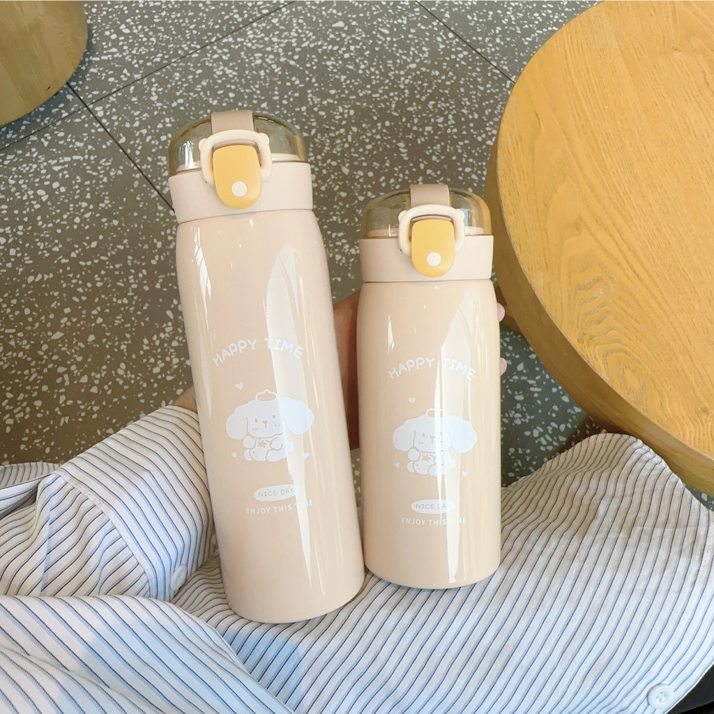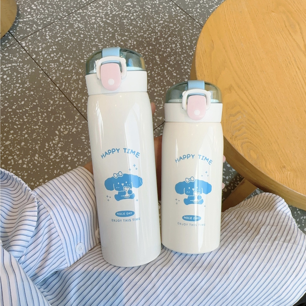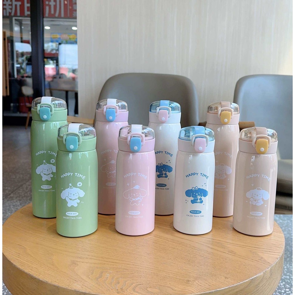 Garrafa Térmica Happy Time Fofinho Tampa com Trava Aço Inox Quente e Frio Escolar Infantil MB261-262