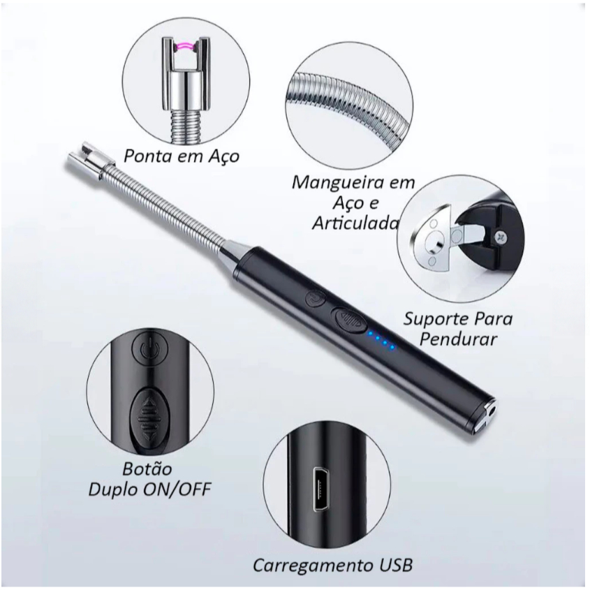 Acendedor De Fogão Isqueiro de Plasma Ecológico para Fogão Velas Camping Churrasqueira Luxo
