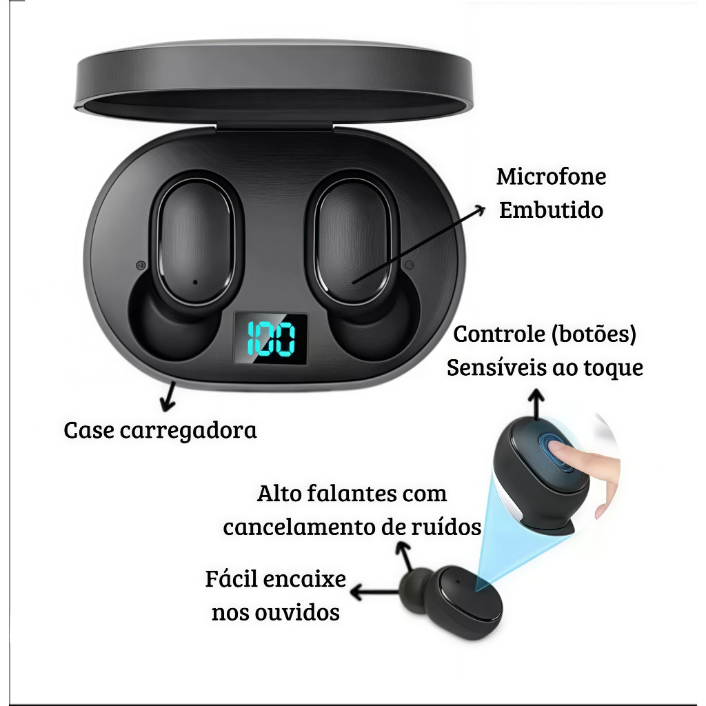 Fone Bluetooth Sem Fio Wireless Airdots 2 pro Redmi TWS Bluetooth Com Led