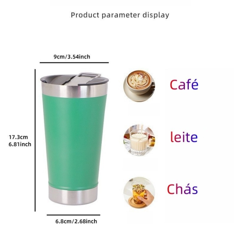 Copo Térmico De Inox Bebidas Gelada e Quente Com Tampa e Abridor 473ml GL
