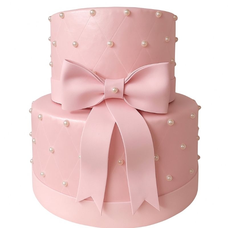 Bolo Fake Falso Rosa Claro Perolado Neutro 2 andares