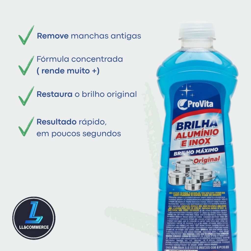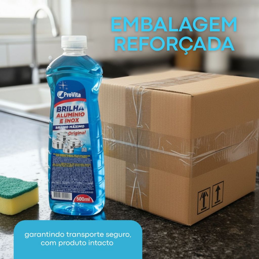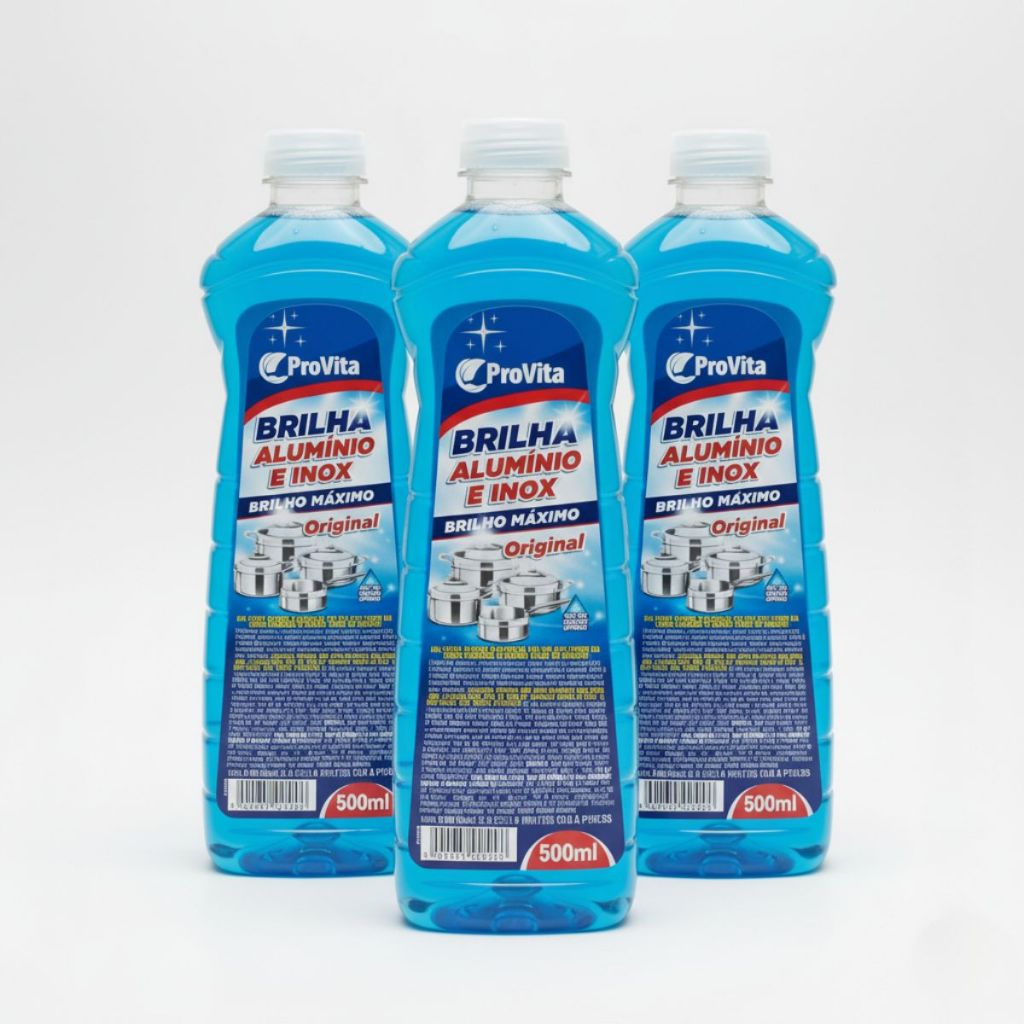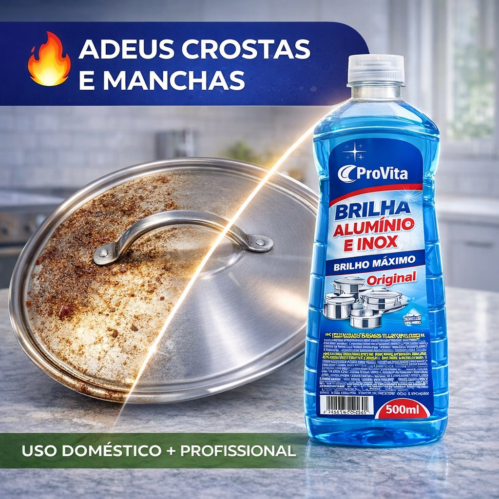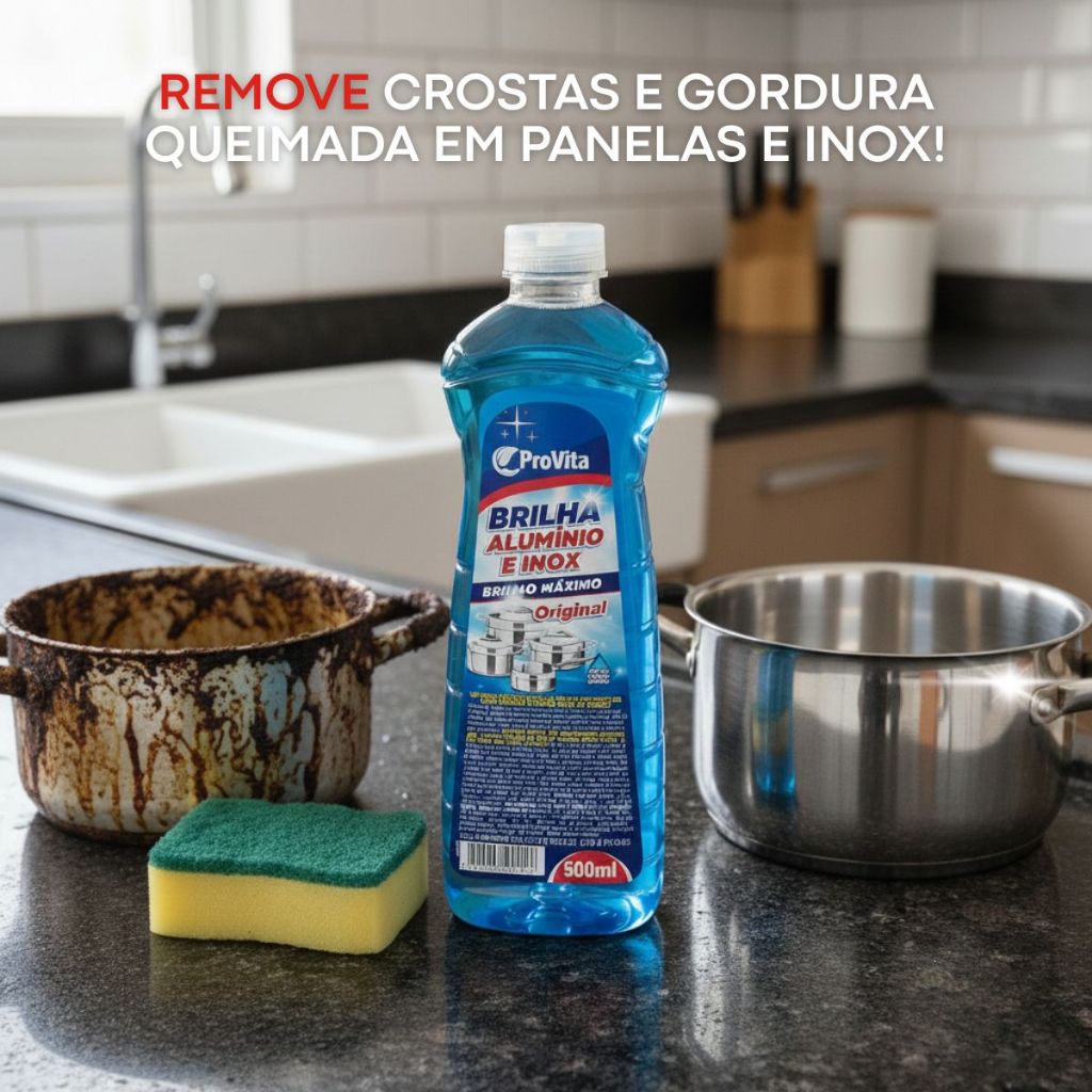 Limpa Alumínio e Inox ProVita 500ml Brilha Panelas Fogão Utensílios Remove Crostas Manchas Gordura