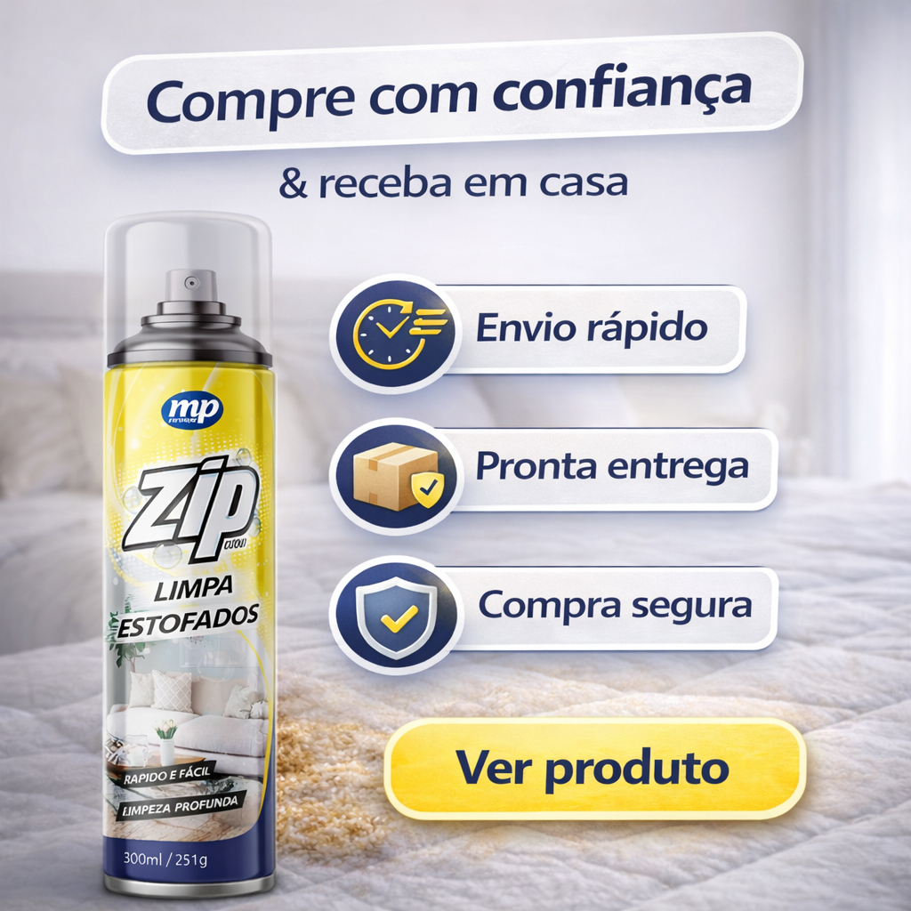 Limpa Estofado Colchão Sofá Spray Zip Clean Espuma Seca Remove Manchas Odor Fácil Uso
