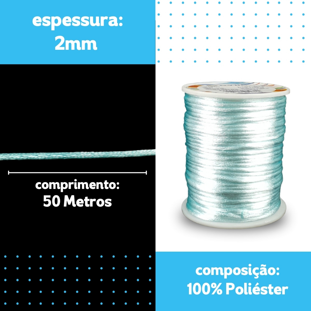 Fio De Seda Fino 2.0 Mm C/50 Metros Cordão Rabo De Rato Resistente De Alta Qualidade - SHEFA