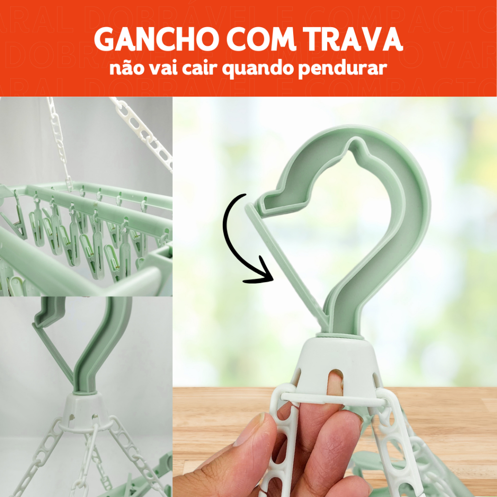 Varal Dobravel Para Roupas Íntimas C/32 Prendedores Ideal para Meias Peças Delicadas Secagem Rápida