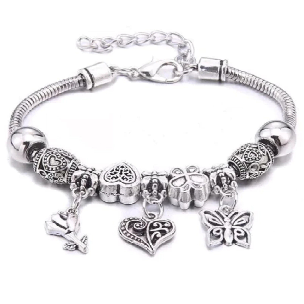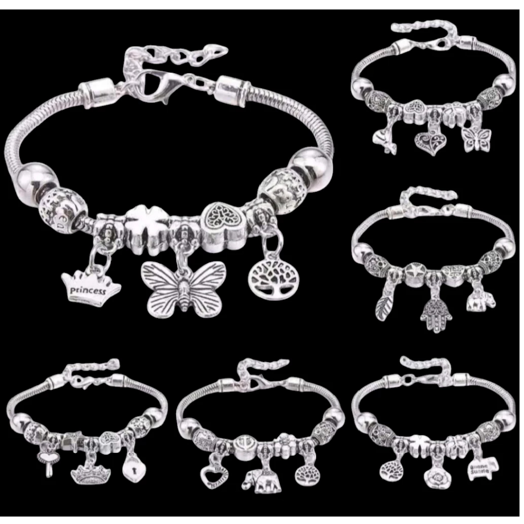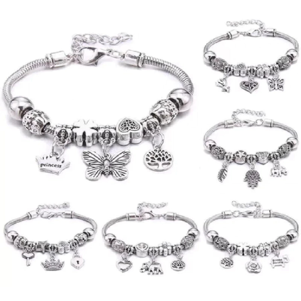 Kit 1- 3 Pulseira 】kit com 1ou 3 pc Pulseira Berloques Prata Estilo Feminina Presente moda/Modelo aleatório