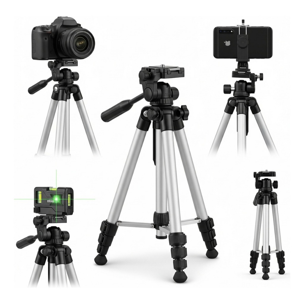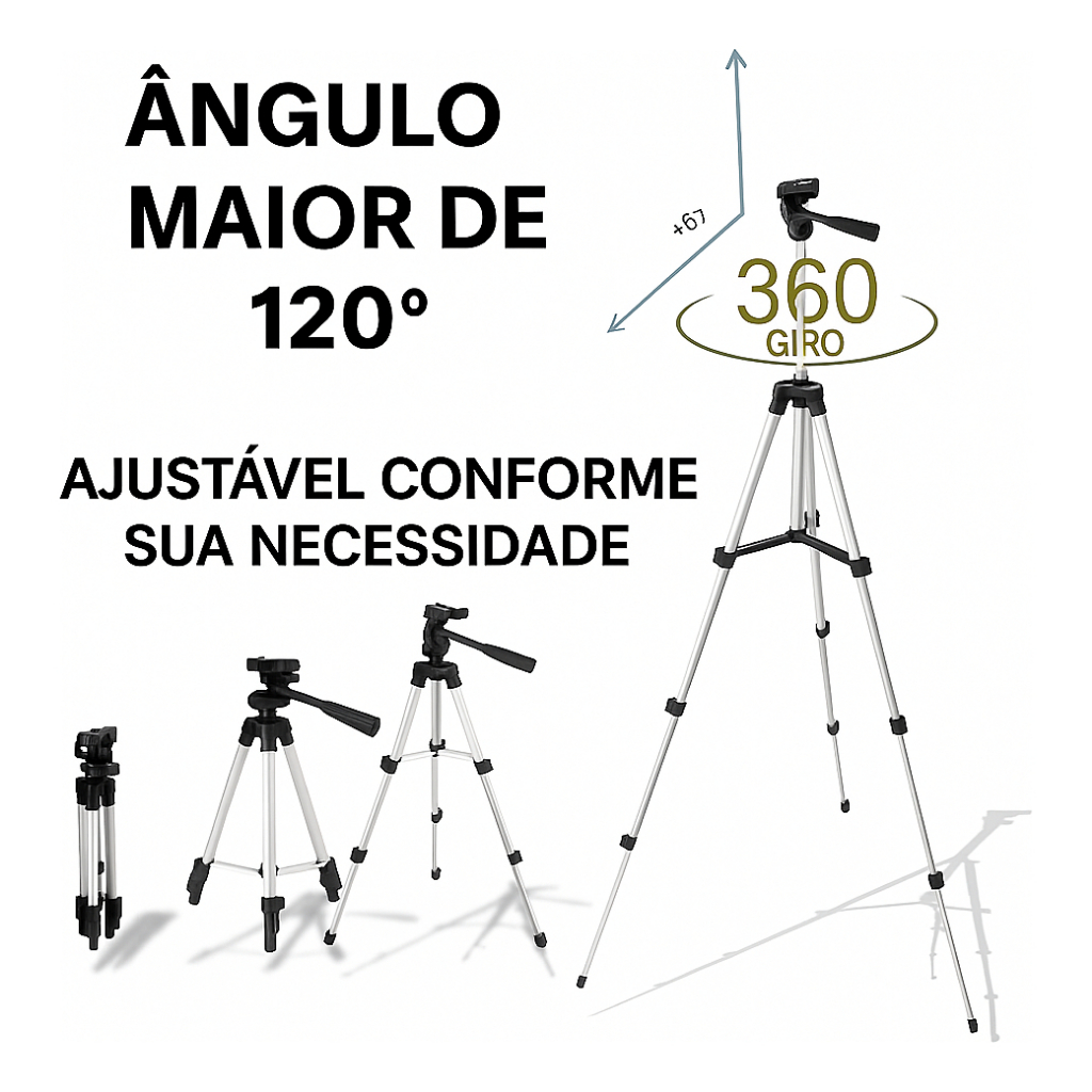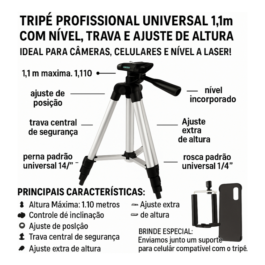 Tripé Nível Laser Rosca 1/4 1,1m Universal Câmera Celular Gravação 1 metro + Brinde
