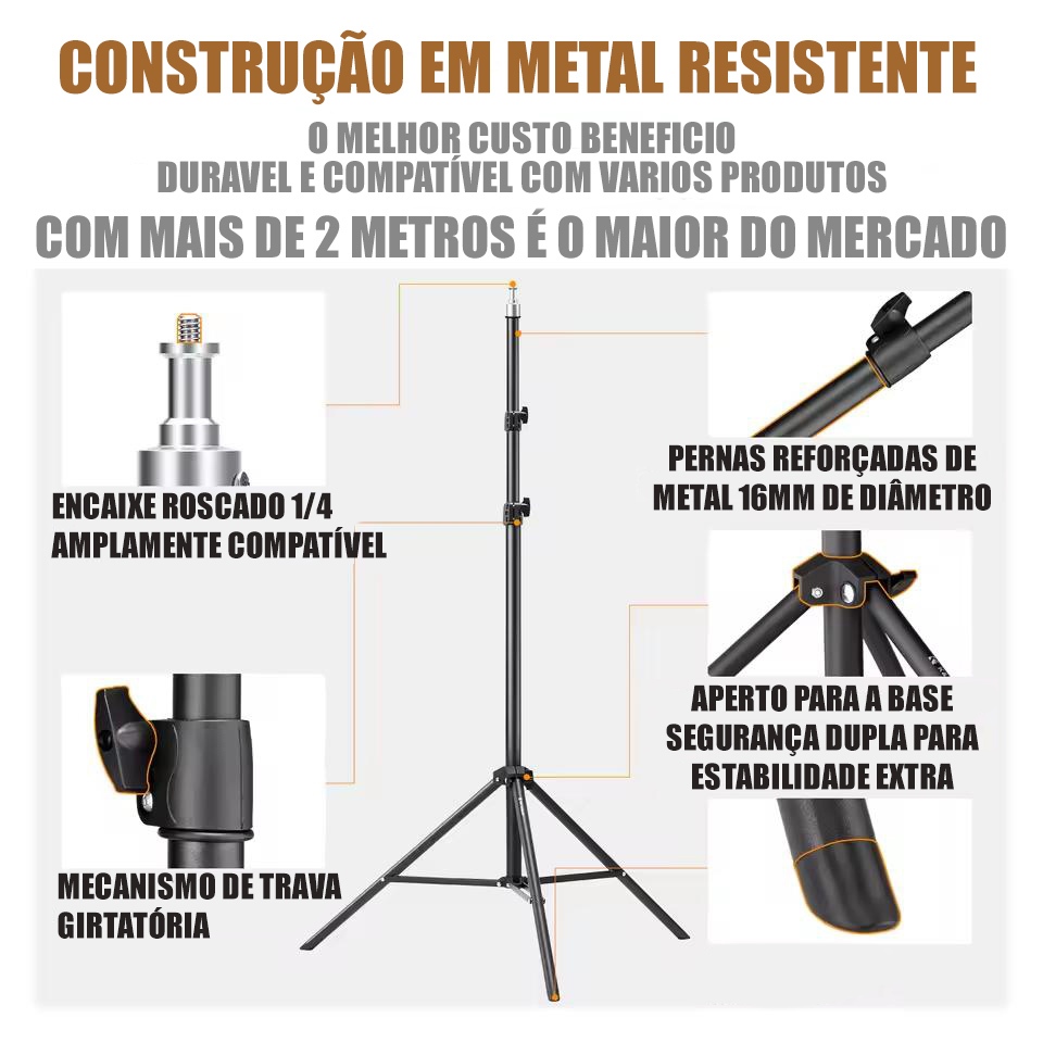 Tripé Universal 2metros Nível Laser Suporte Projetor Hy300 Hy320 Rosca 1/4