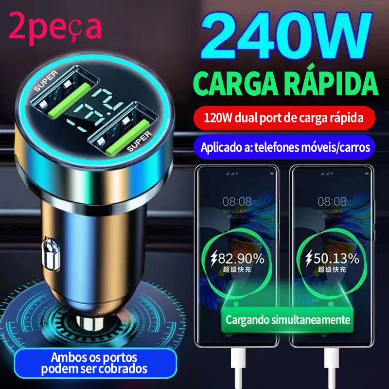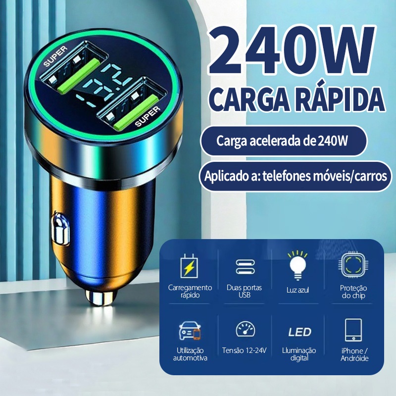 Carregador De Carro Turbo 240W Super Rápido Carregador De Contagem Dual USB Carregador De Celular Para Carro