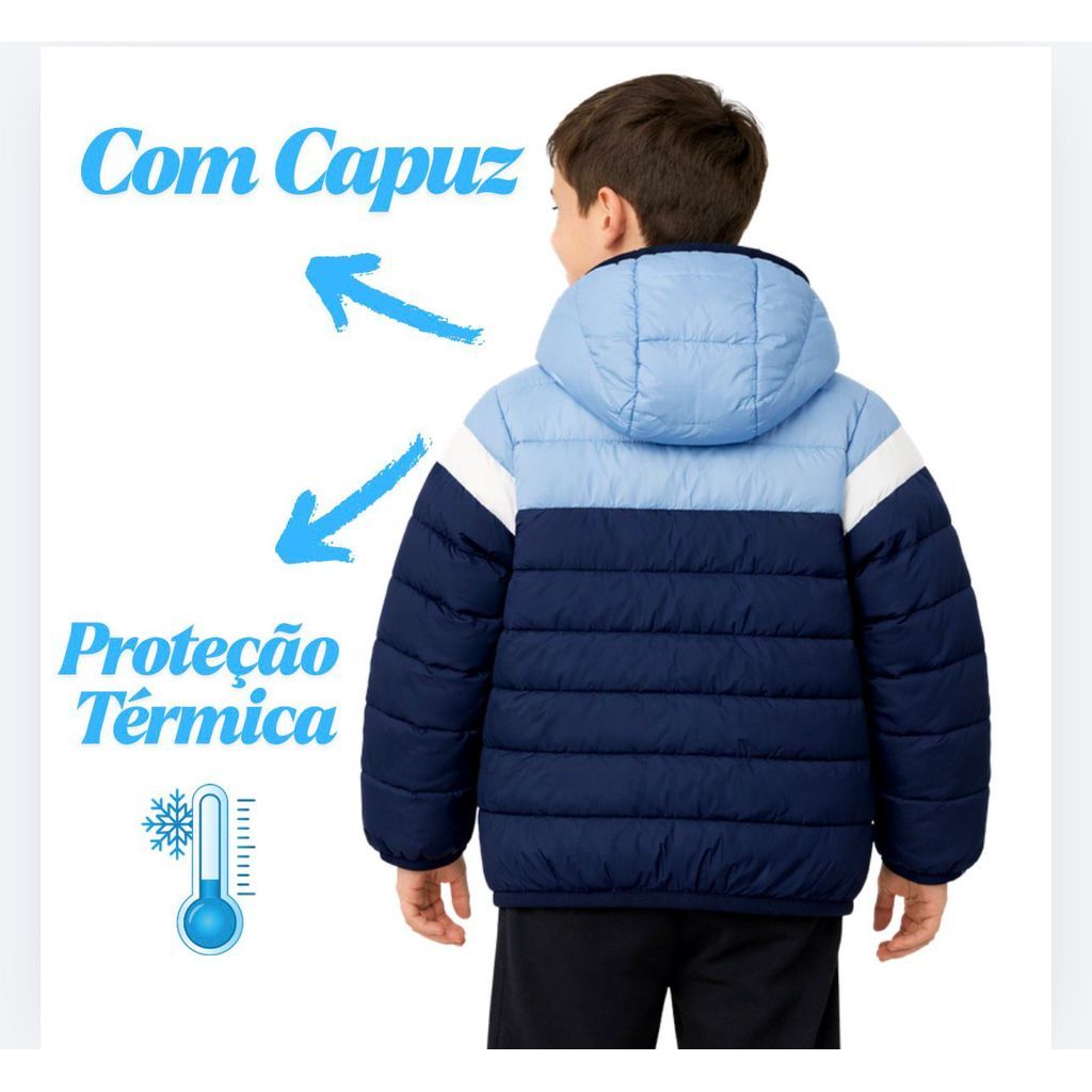 Jaqueta, Casaco Puffer Infantil Impermeável Premium com Capuz Bolso Menino Menina Com Ziper Colorida