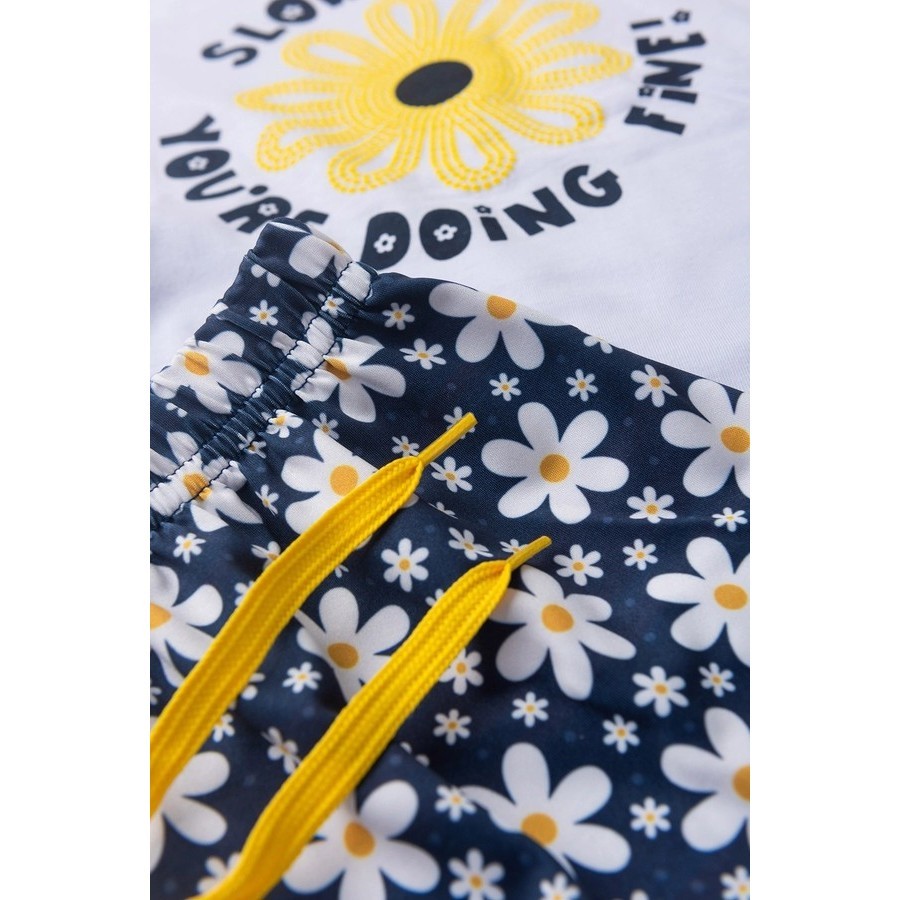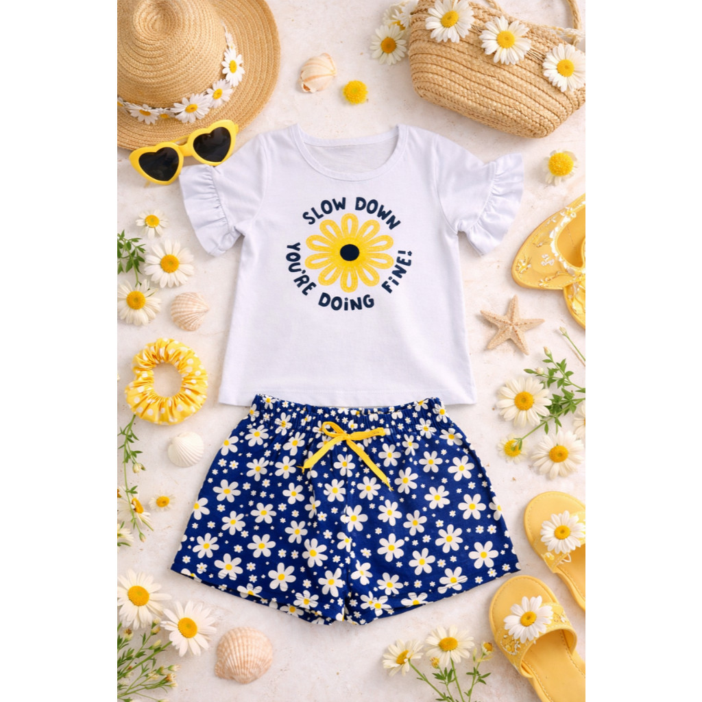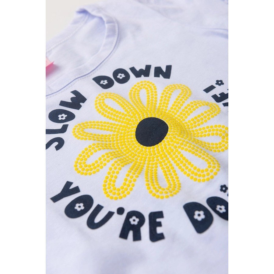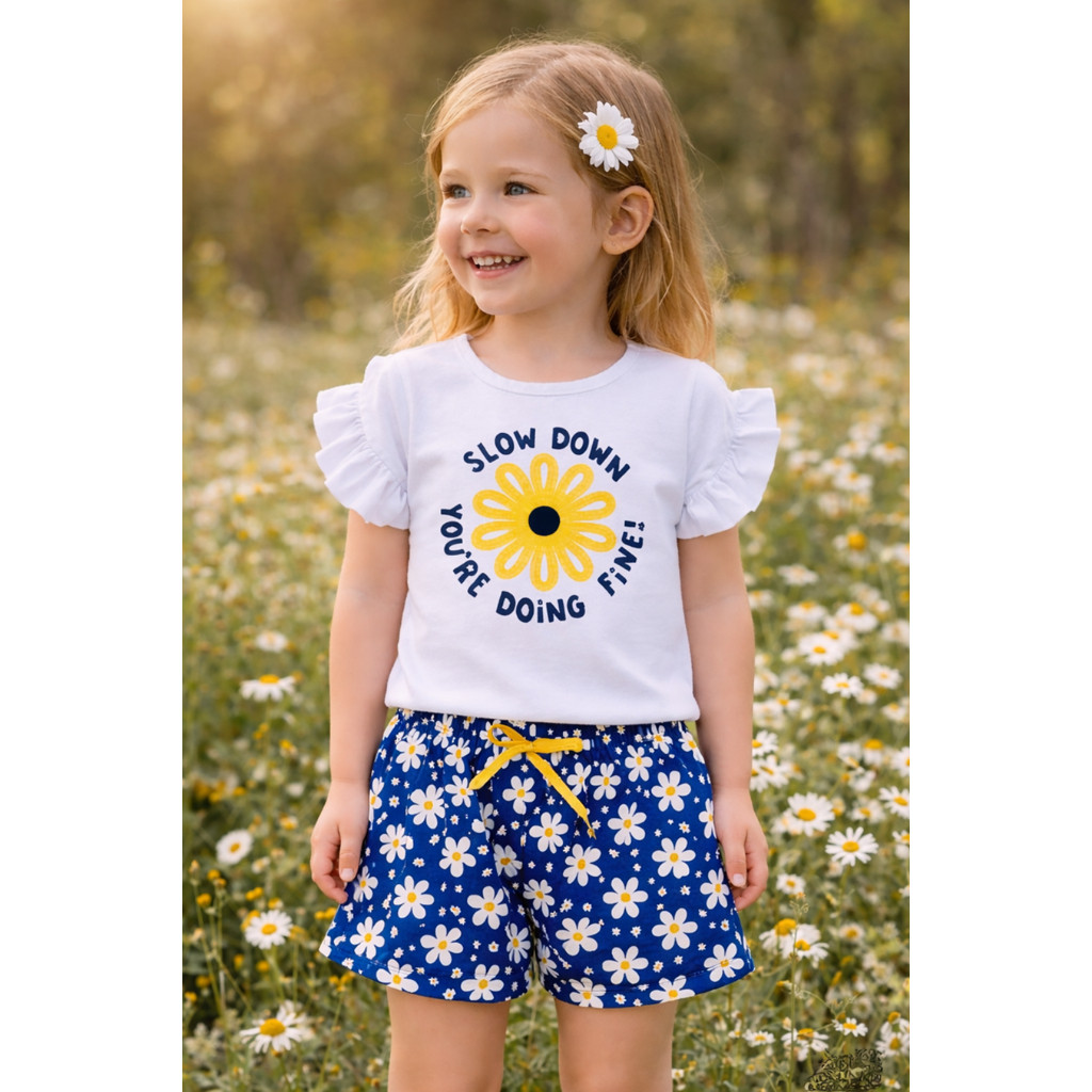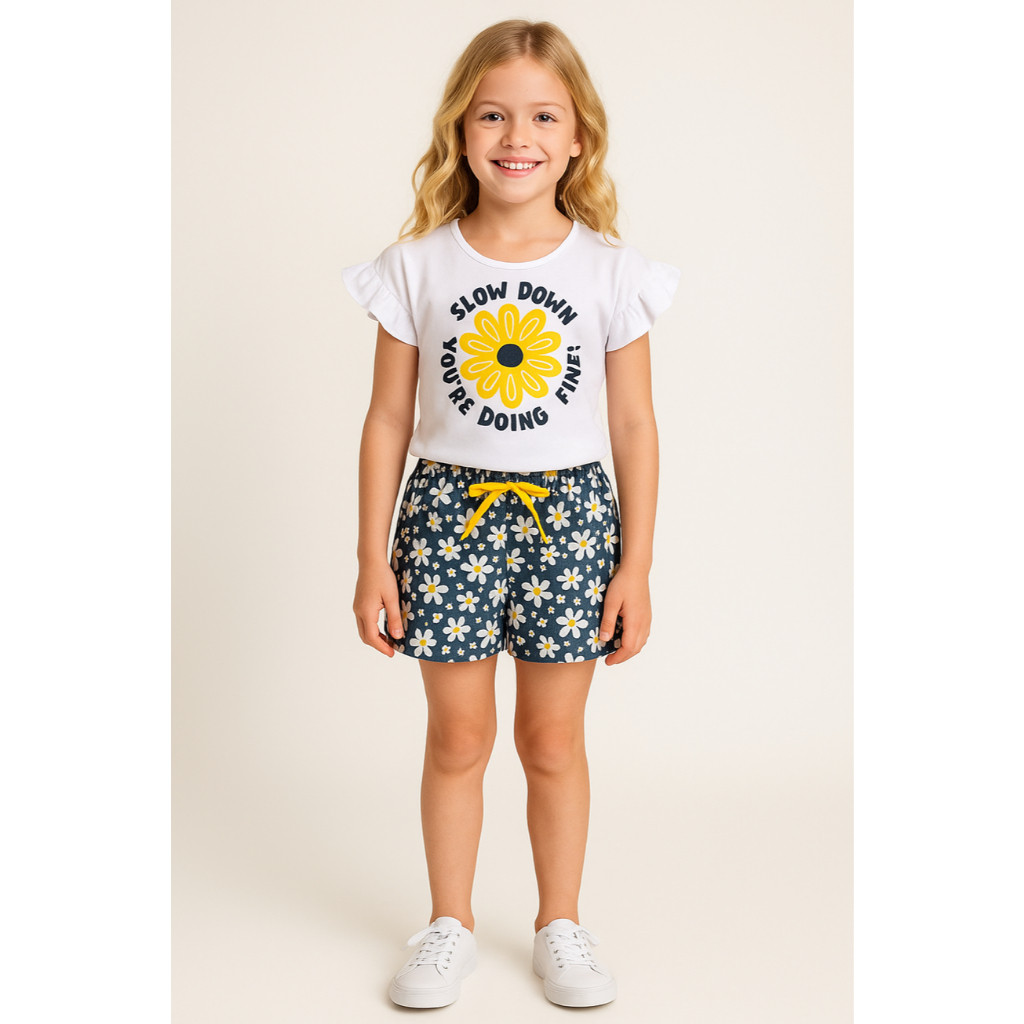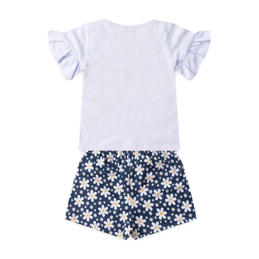 Conjunto Infantil Blusa Meia Malha com Estampa e Bermuda Poliflex Estampada Verão