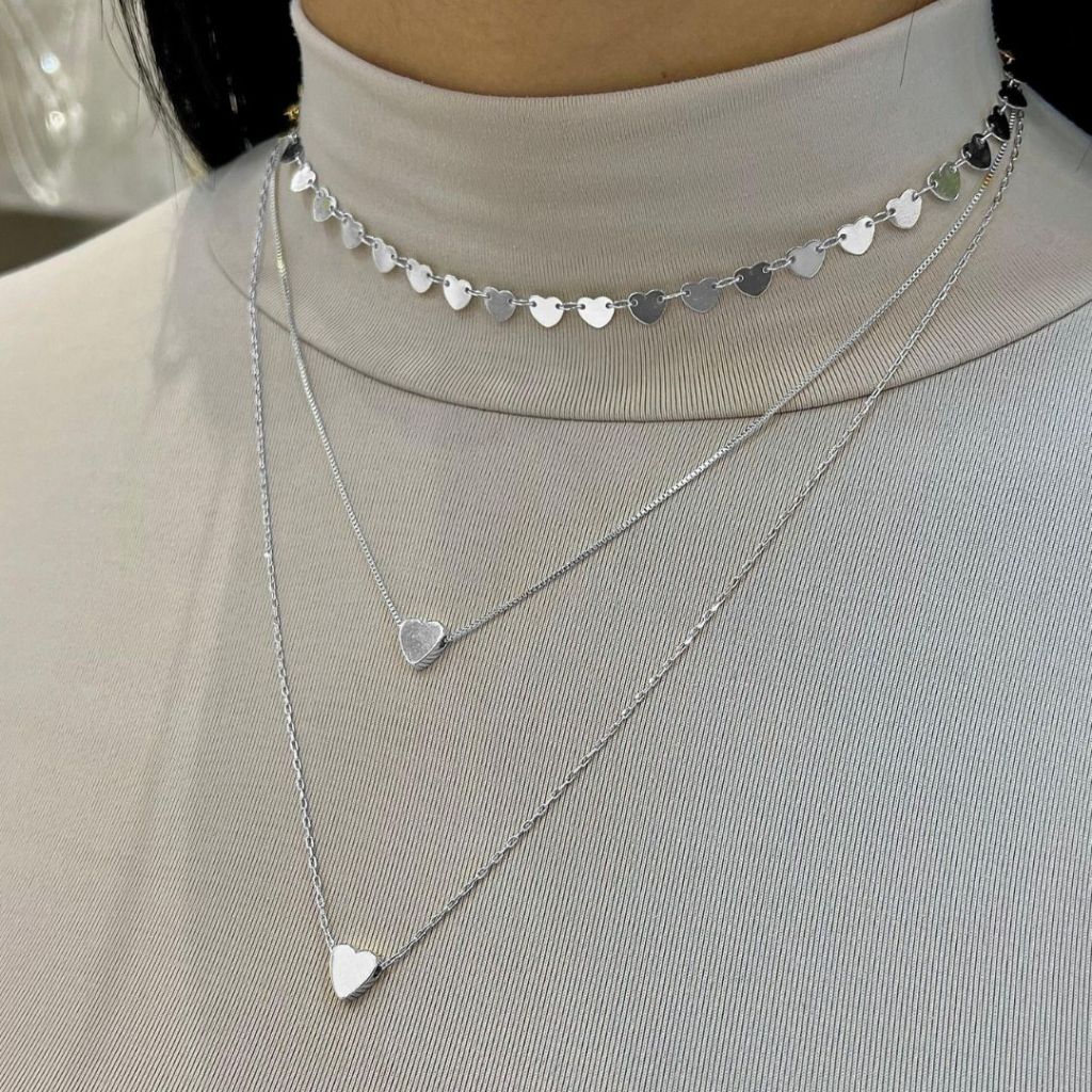 COLAR DE CORAÇÃO FEMINIO TRIPLO COM PINGENTES DE CORAÇÃO – SEMIJOIA BANHADO EM OURO 18k OU PRATA 925