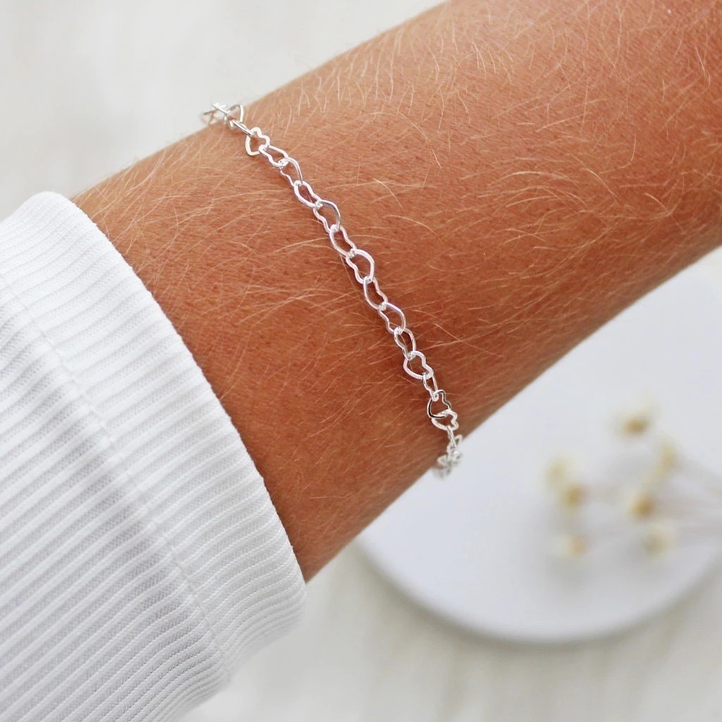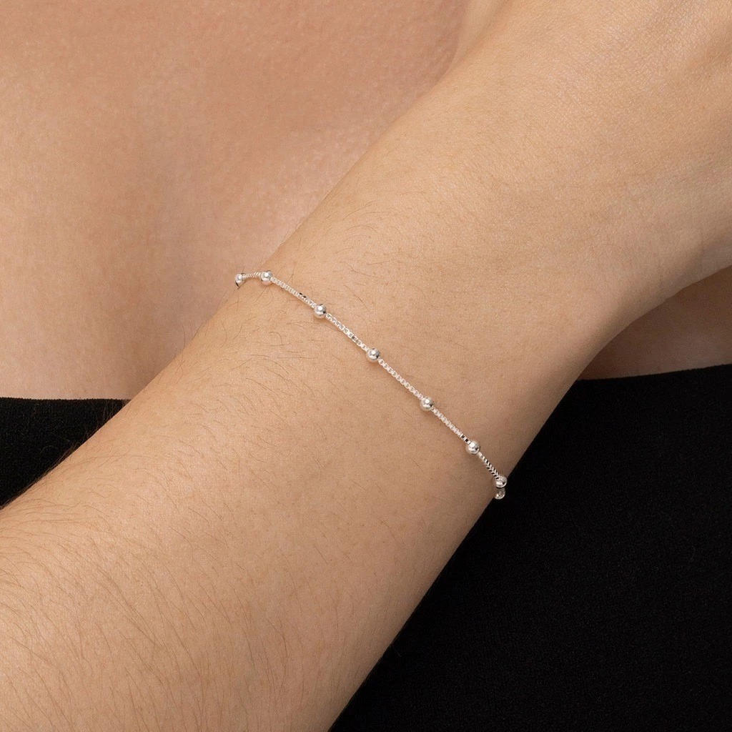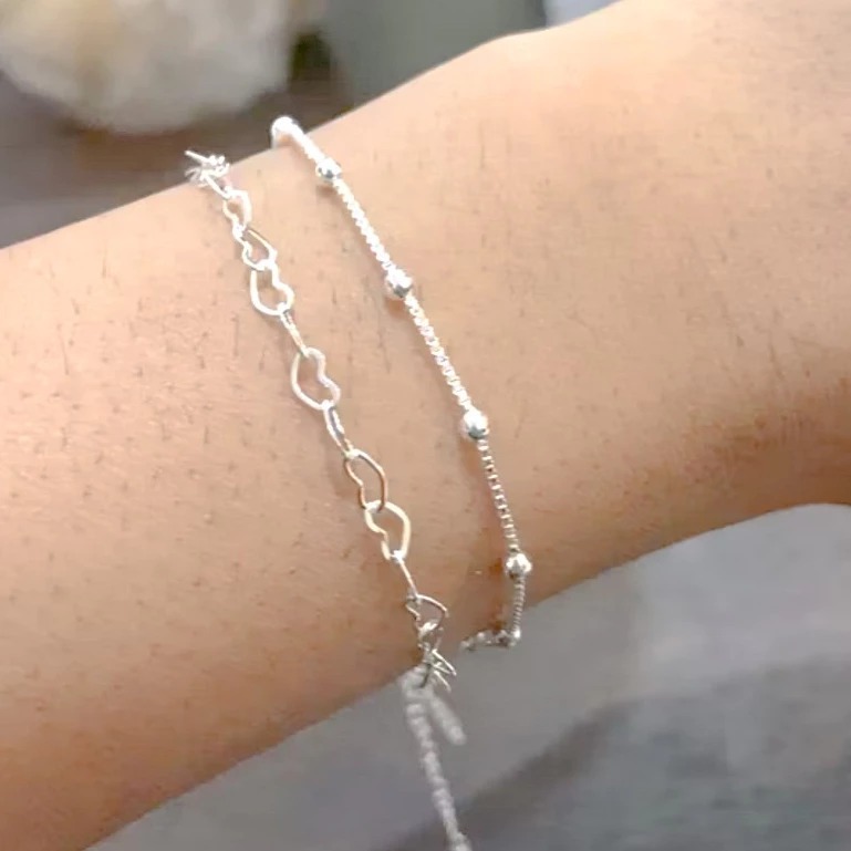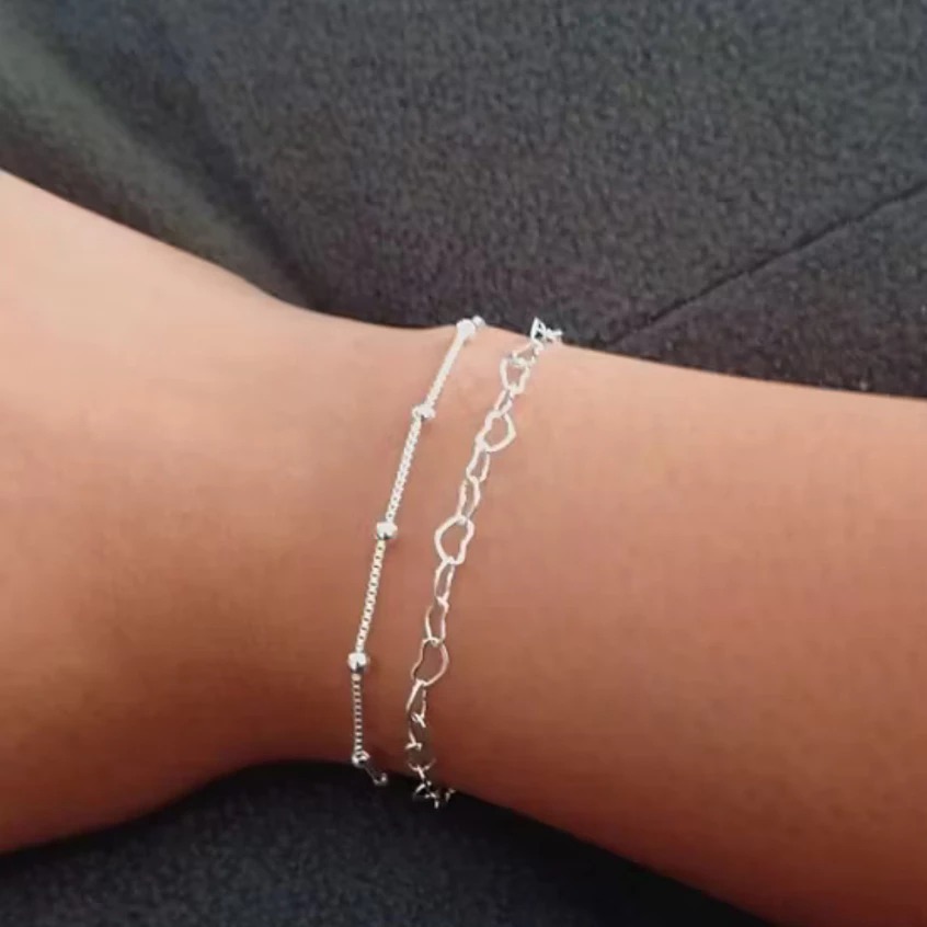 Kit 02 Pulseiras Feminina Bolinha e Coração banhada a Prata 925