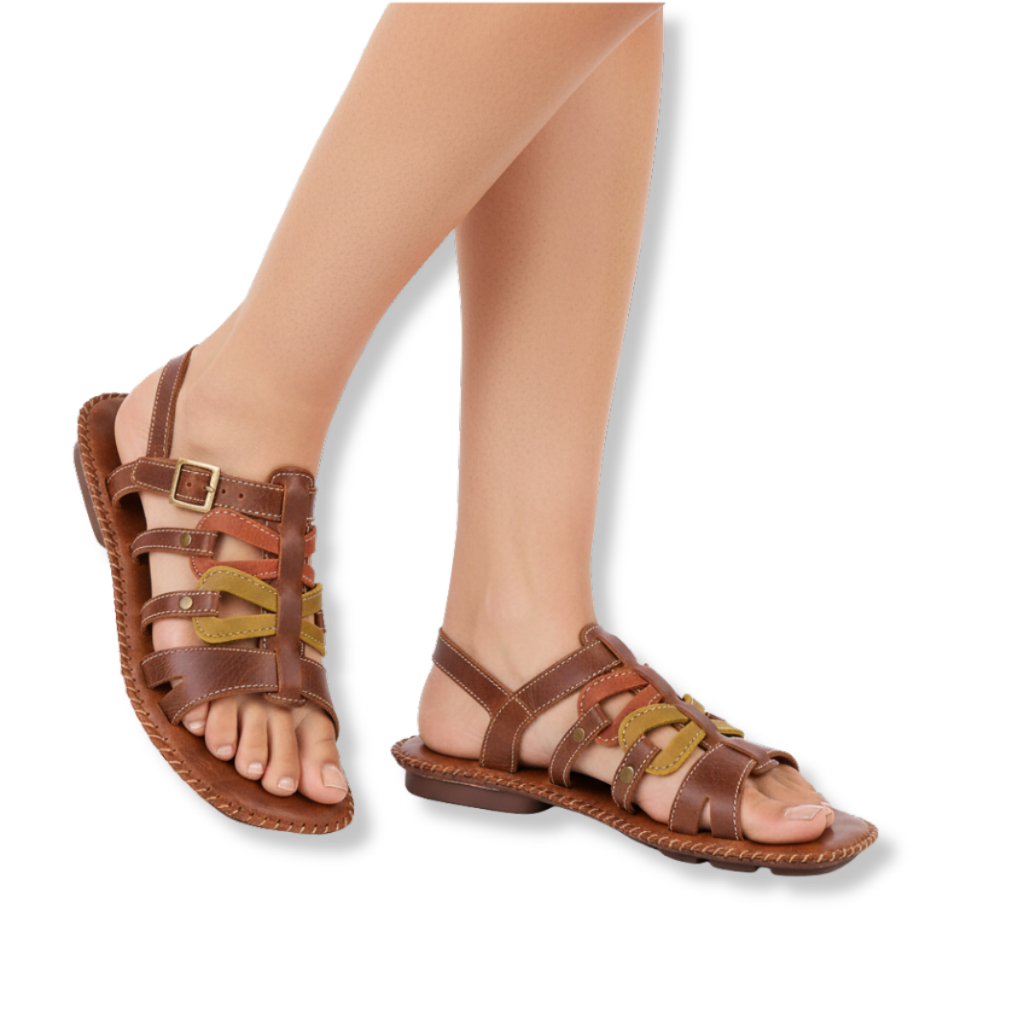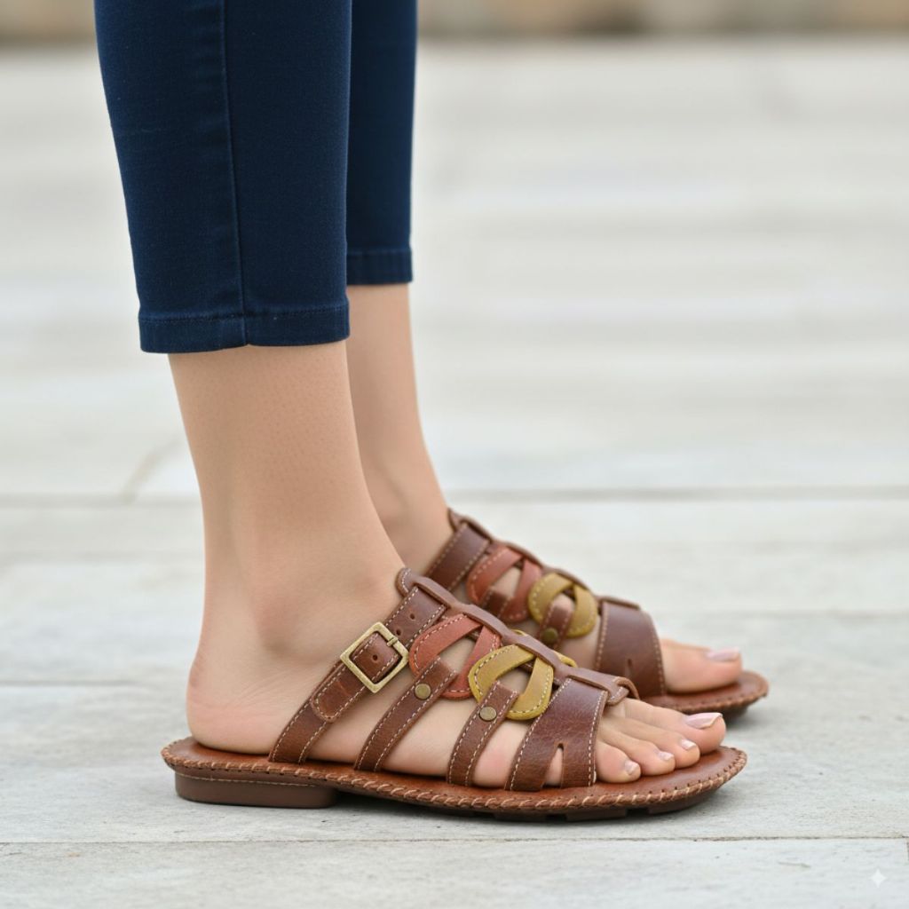Sandália Rasteira Em Couro Legitimo Feminino Solado Costurado Com Fivela Antiderrapante