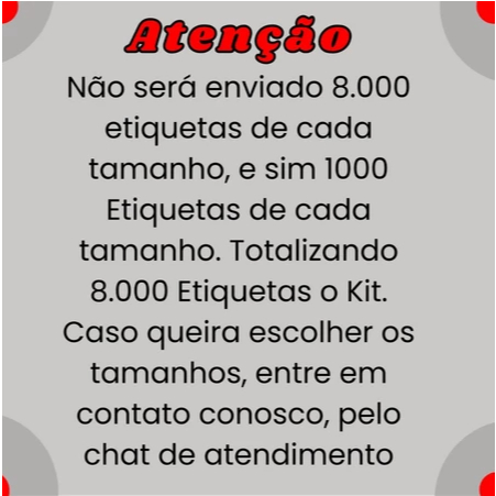 Etiqueta de tamanho Adesiva Kit C/4 E Unitário 4.000 Un E 1.000 Un