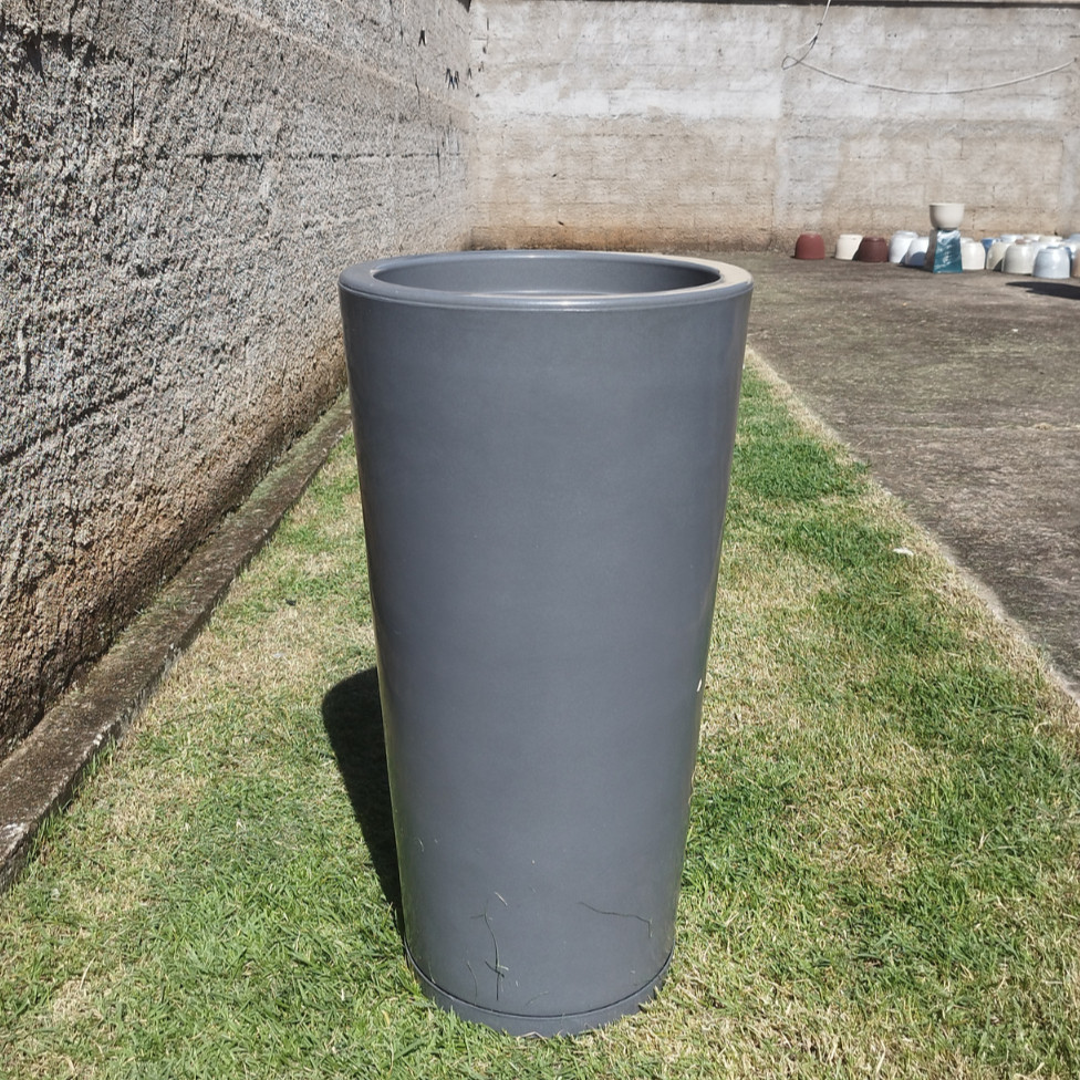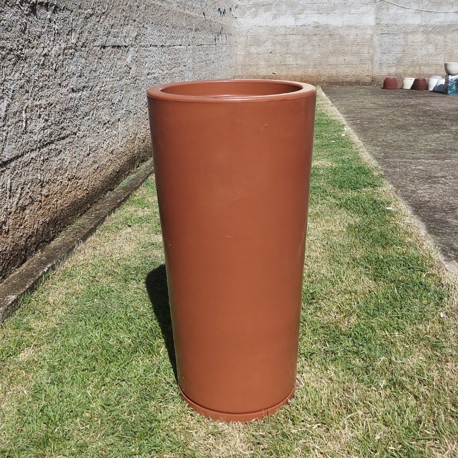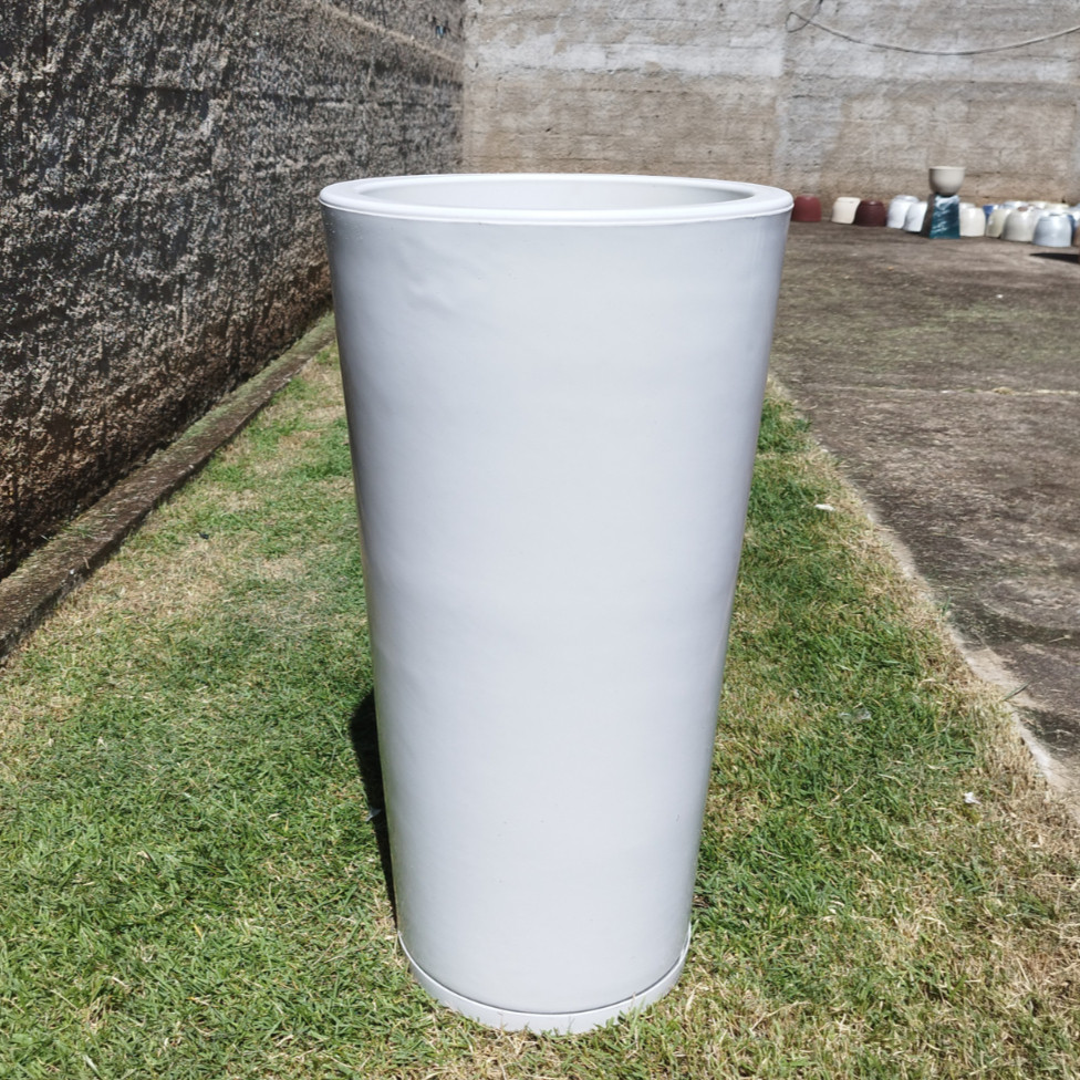 Vaso Grande 75 cm de Polietileno para Plantas Coluna Redonda Cone Lisa Moderna Jardim Sala Com Prato