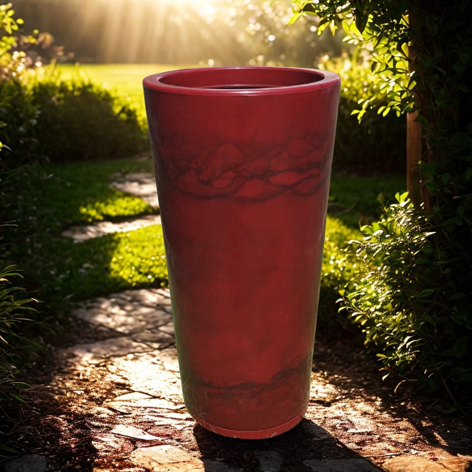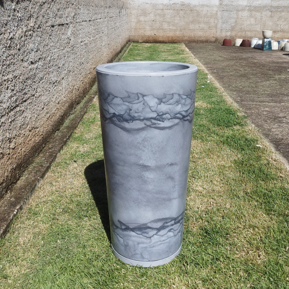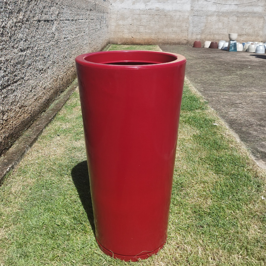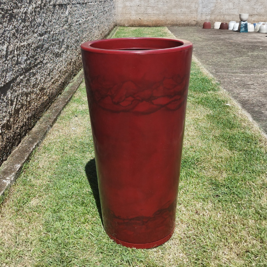 Vaso Grande 75 cm de Polietileno para Plantas Coluna Redonda Cone Lisa Moderna Jardim Sala Com Prato