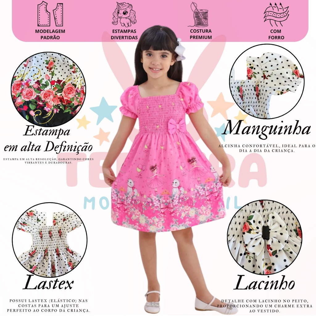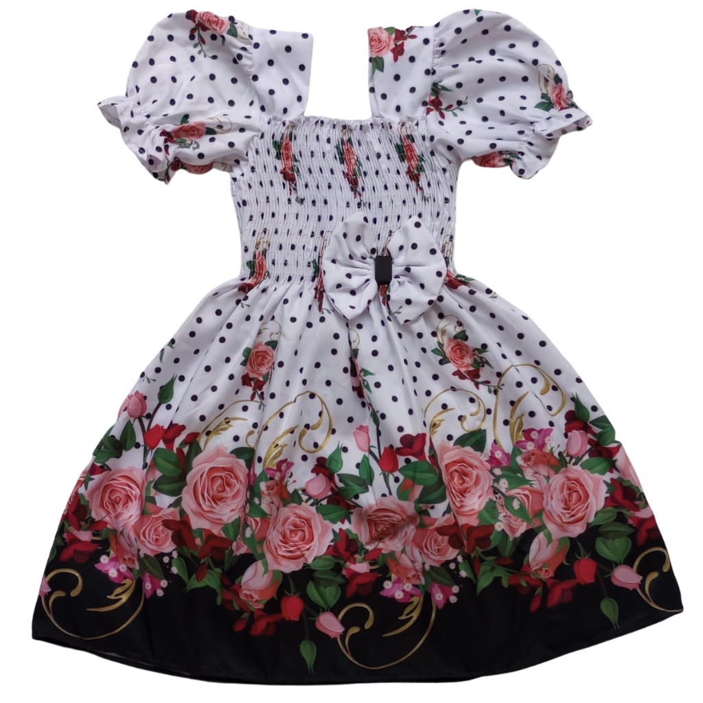 Vestido Infantil Estampa Floral Ciganinha Preto e Branco