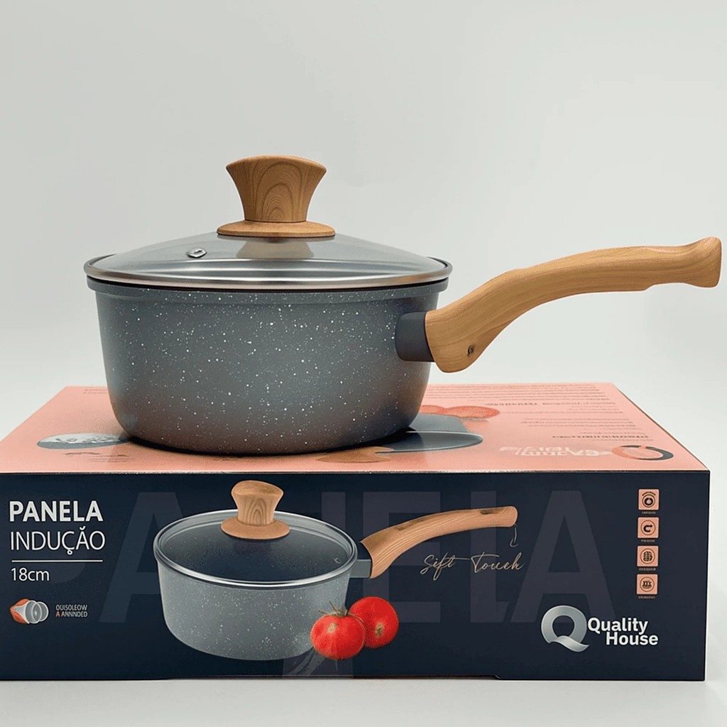 Panela De Cerâmica com Tampa de Vidro - 18cm