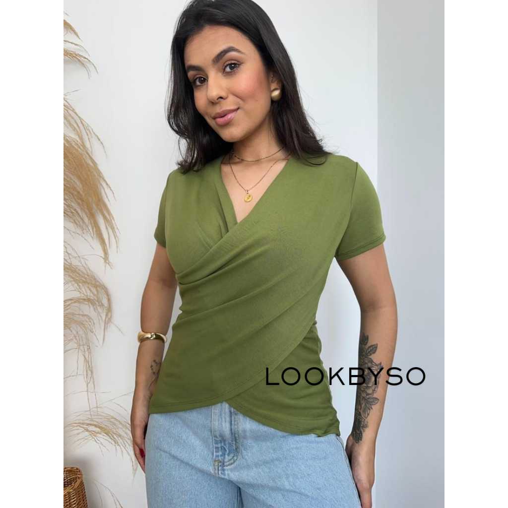 Blusa Feminina Decote Transpassado Amamentação Blusinha Casual Elegante