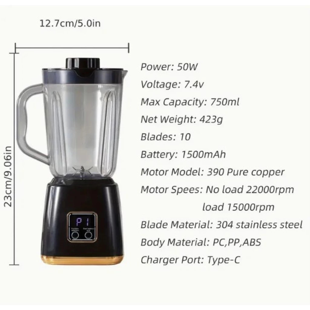 Liquidificador Portátil 750ml – 10 Lâminas Turbo, Recarregável USB com Segurança Inteligente