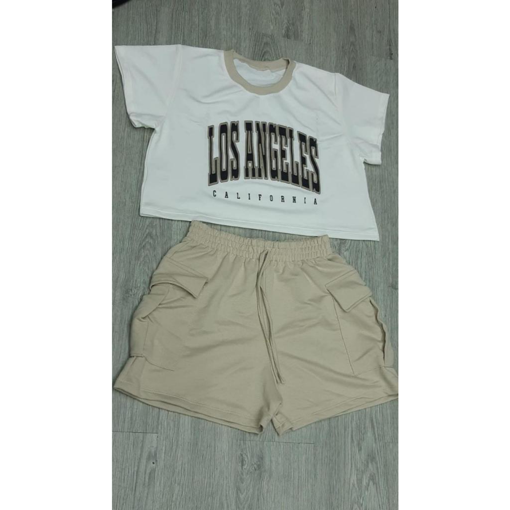 Conjunto Feminino Moletinho Short Cargo e Camiseta Los Angeles