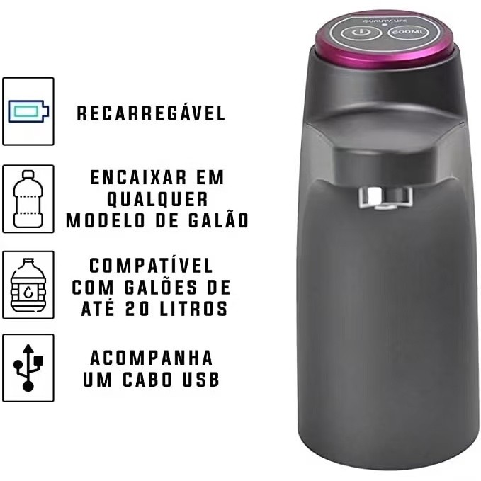 Bebedouro Bomba Elétrica Garrafão Galão Água Recarregável tomate compativel com galão de 20L