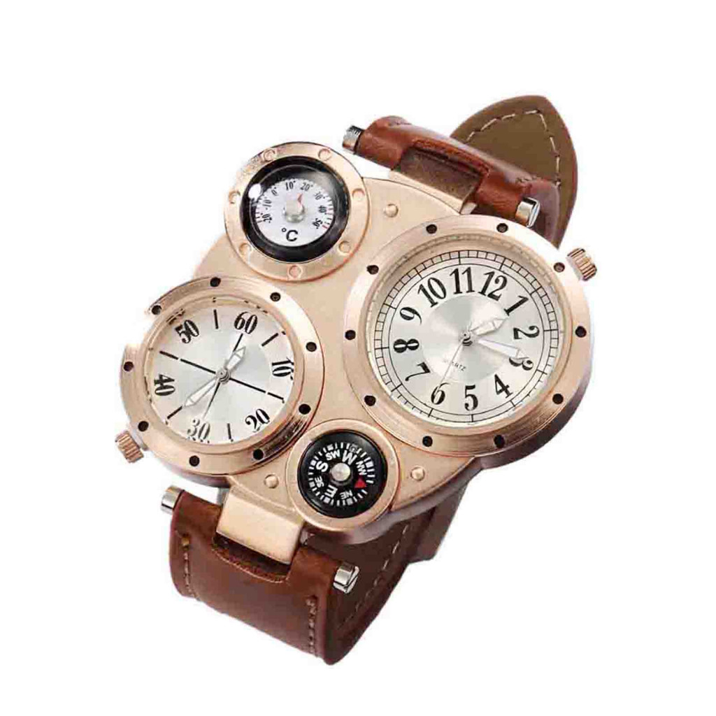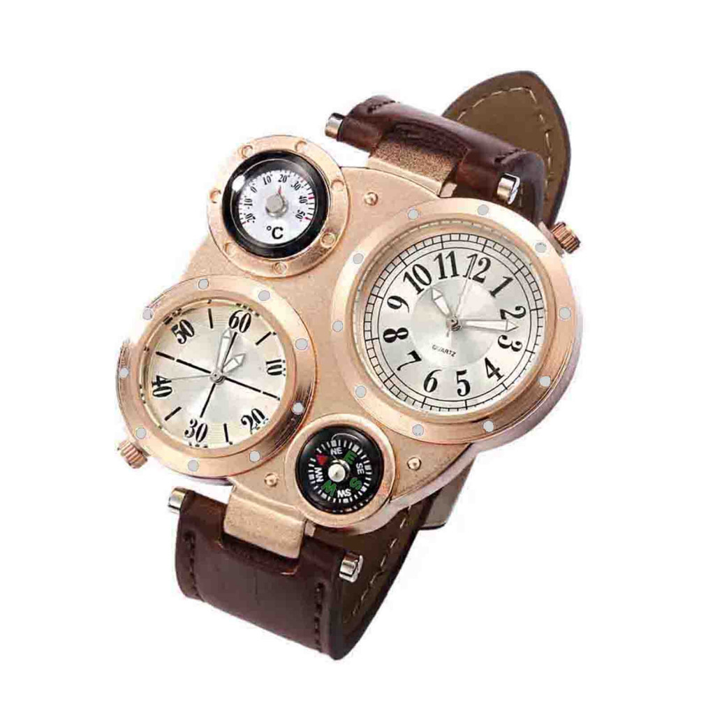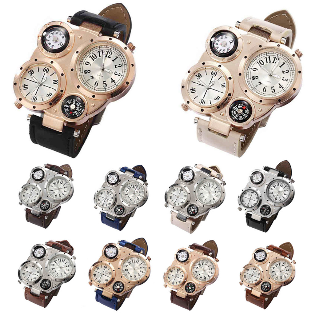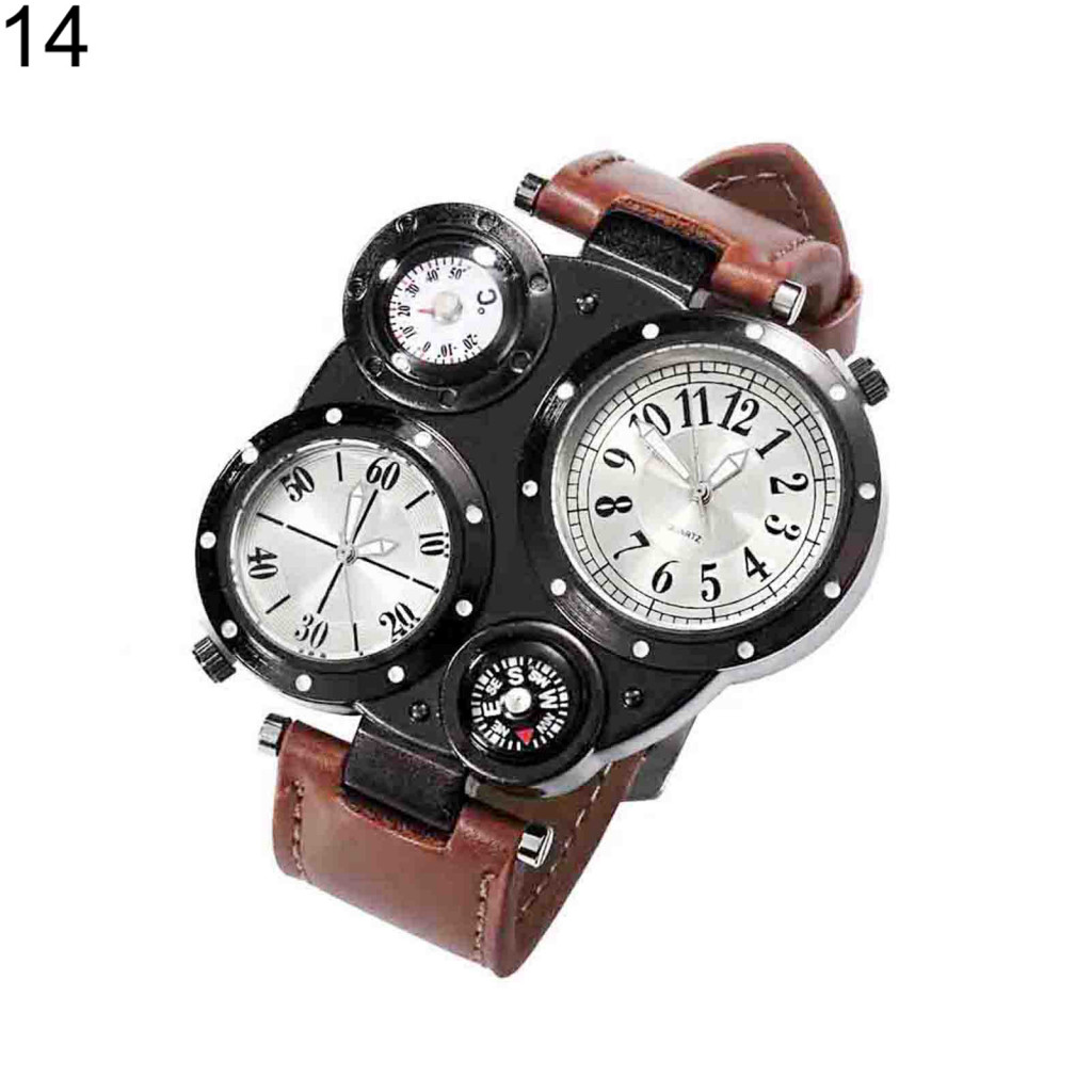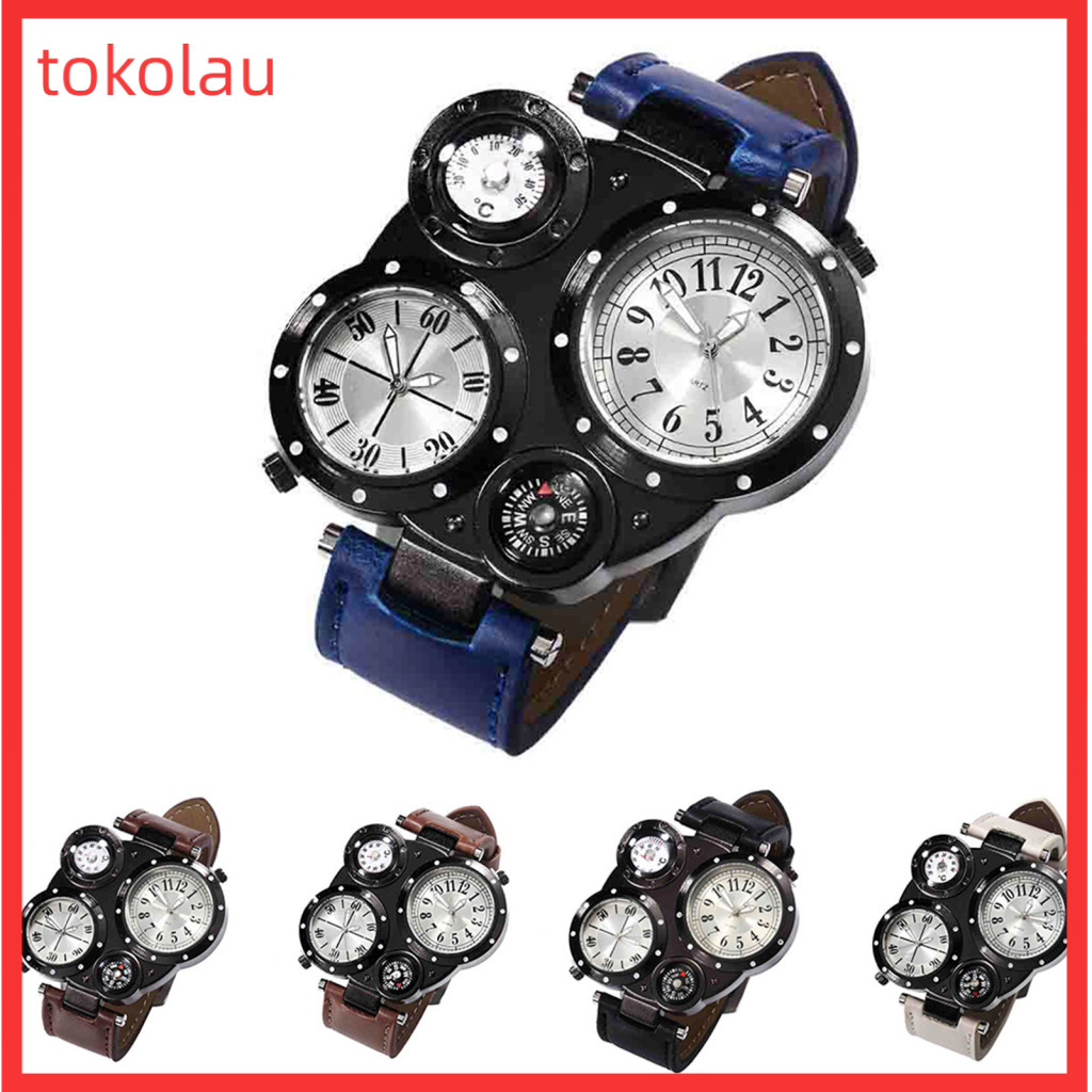 Tokolau Masculino Chique Movimento Duplo Quartzo À Prova D'água Termômetro Externo Bússola Relógio De Pulso
