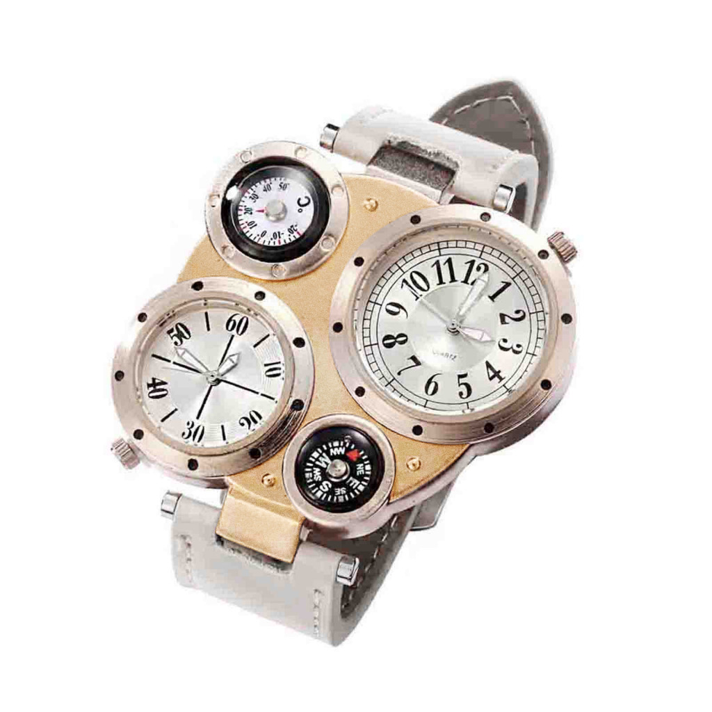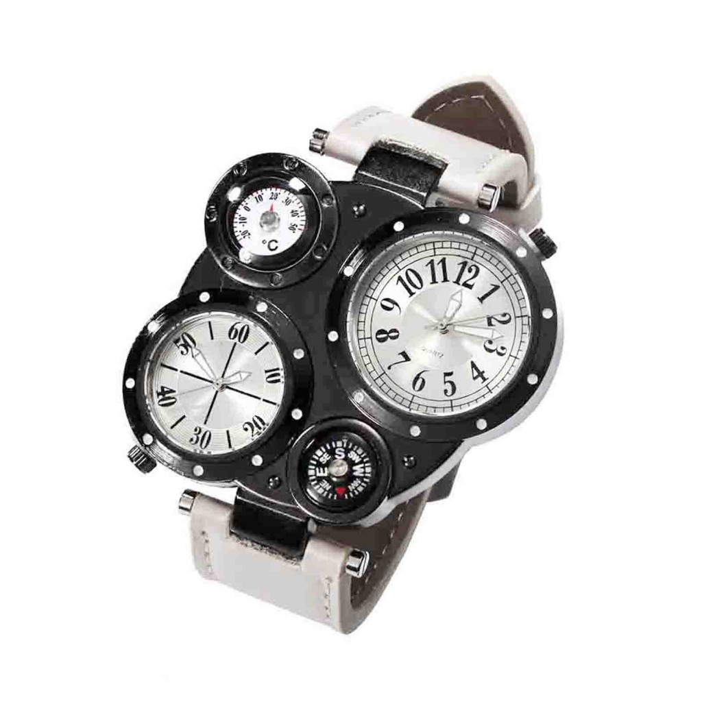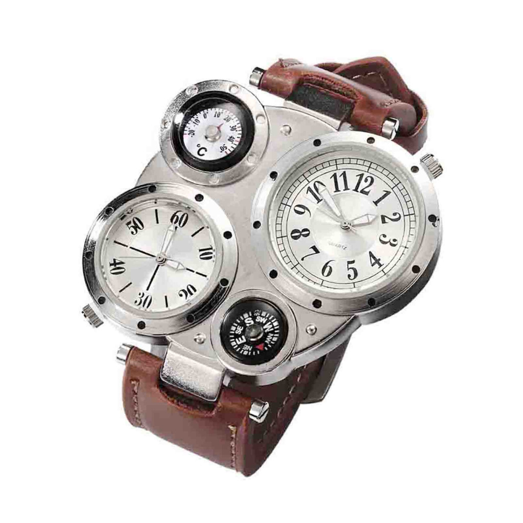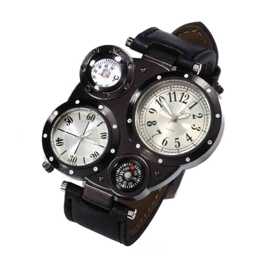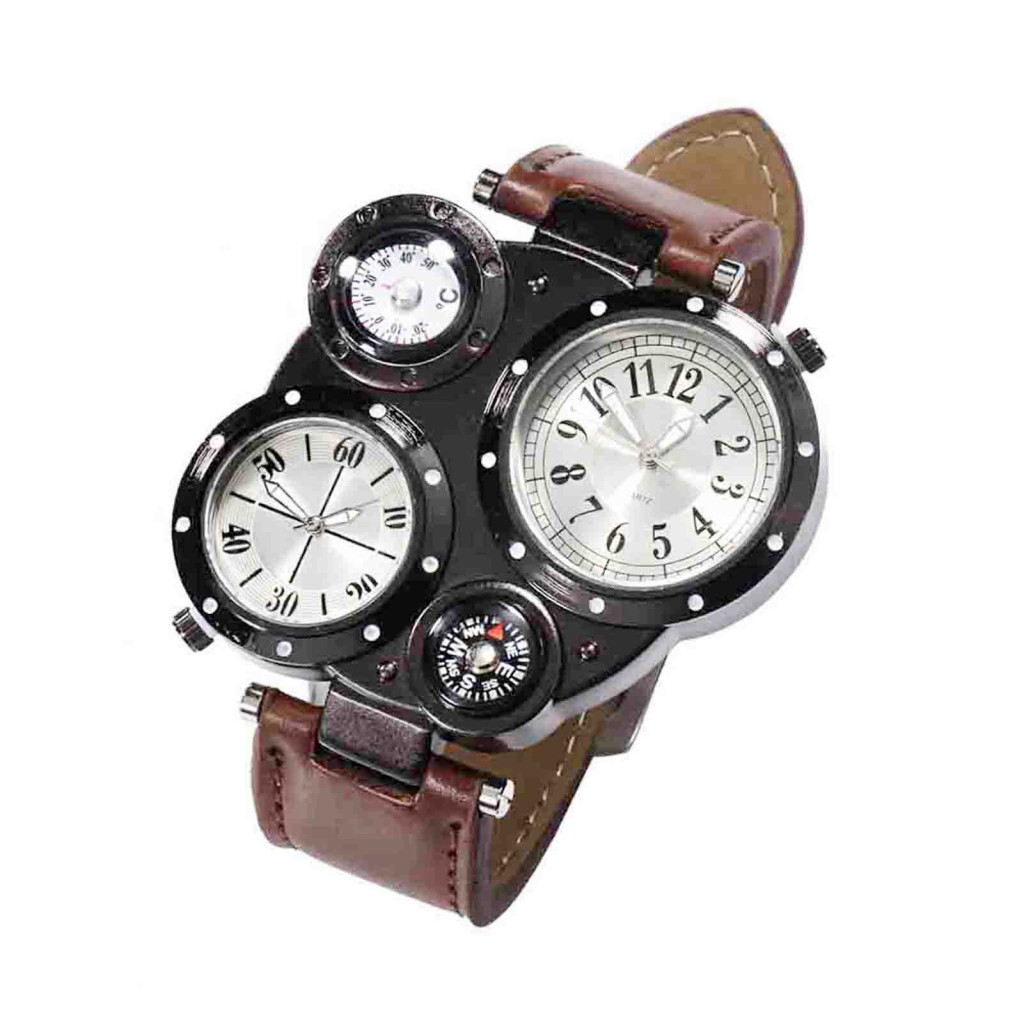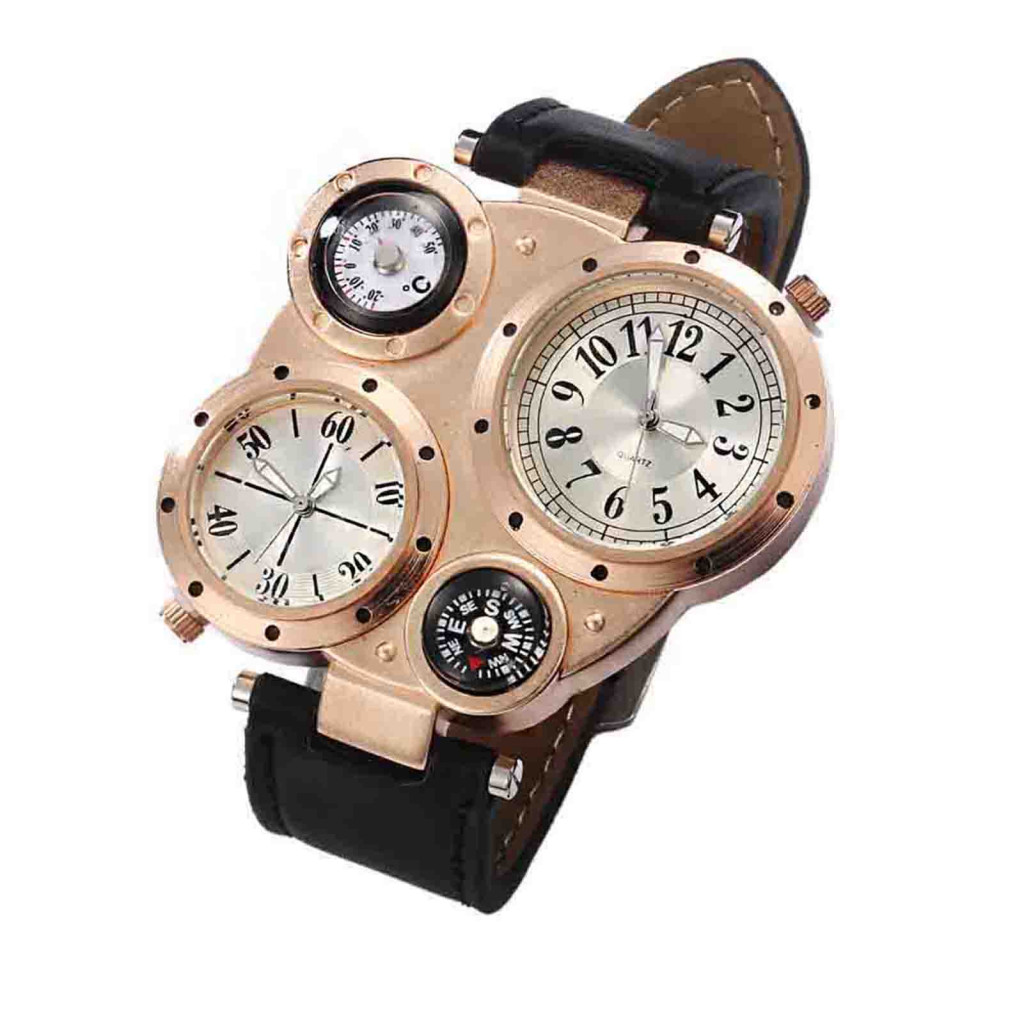 Tokolau Masculino Chique Movimento Duplo Quartzo À Prova D'água Termômetro Externo Bússola Relógio De Pulso