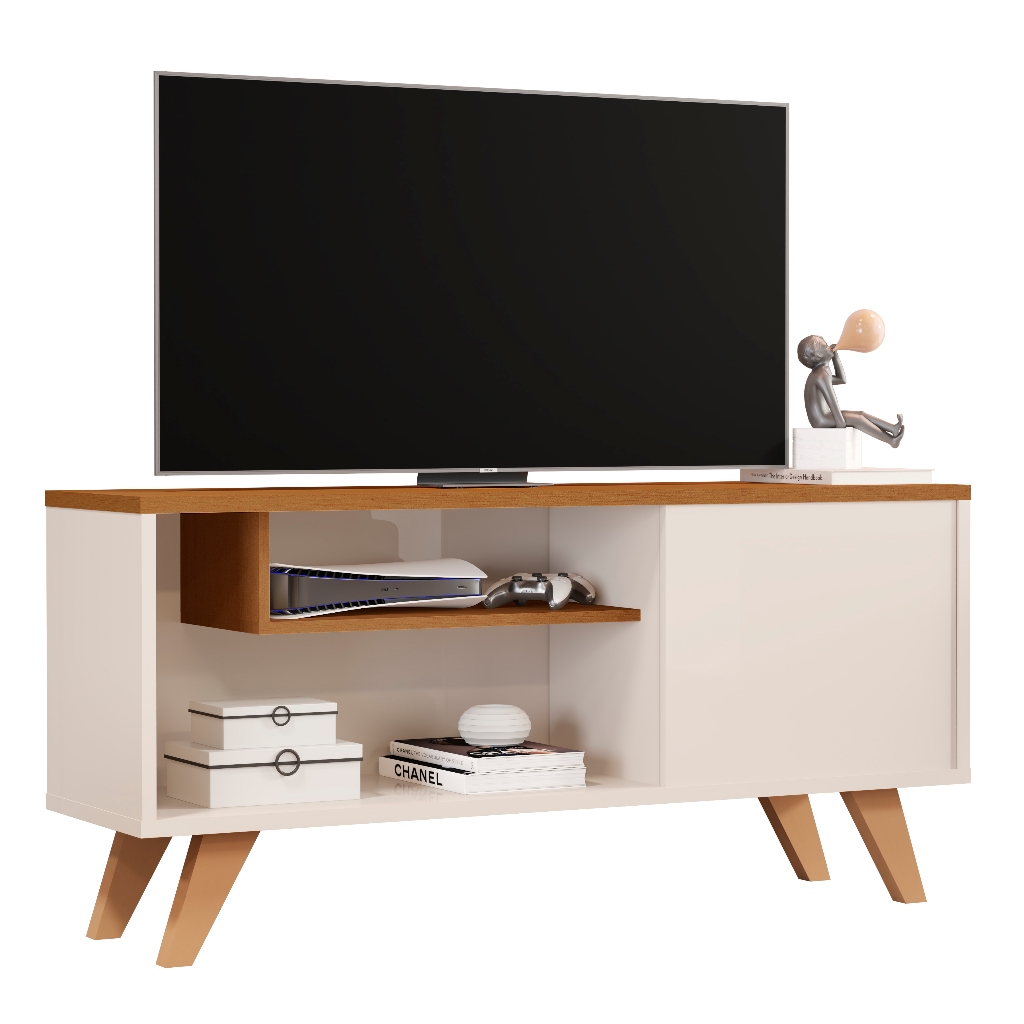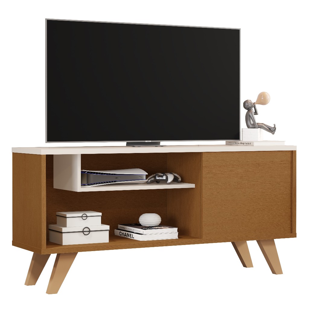 Rack Sala De Estar P/Tv Até 45" Moderno Prateleira Porta Decorativo Hall De Entrada Outlet Plus