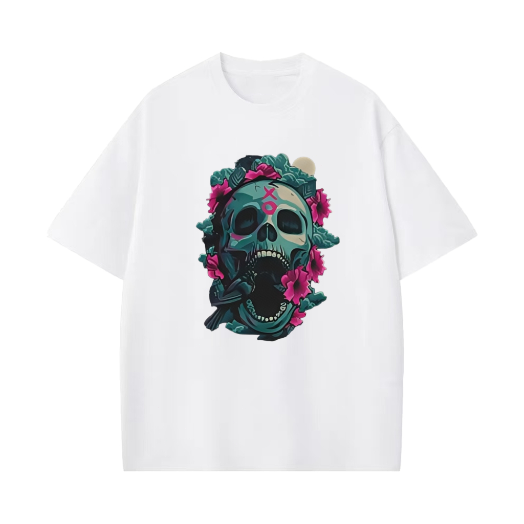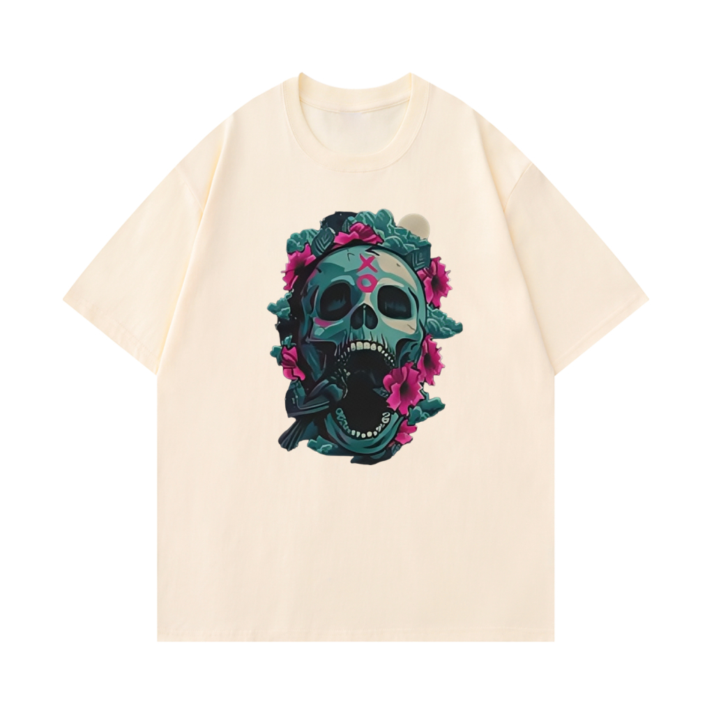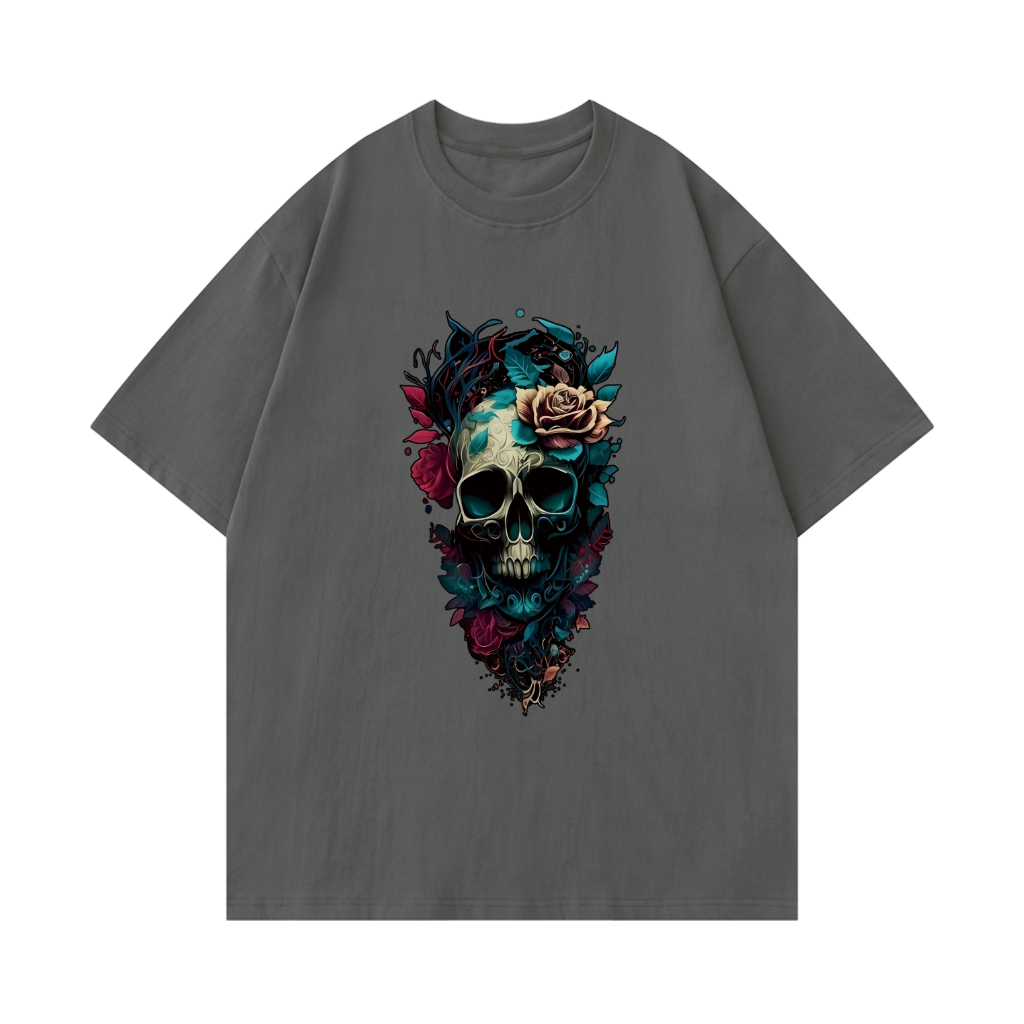 [Camiseta Premium em Algodão Puro]SISI Camiseta Algodão Premium Crânio Manga Curta