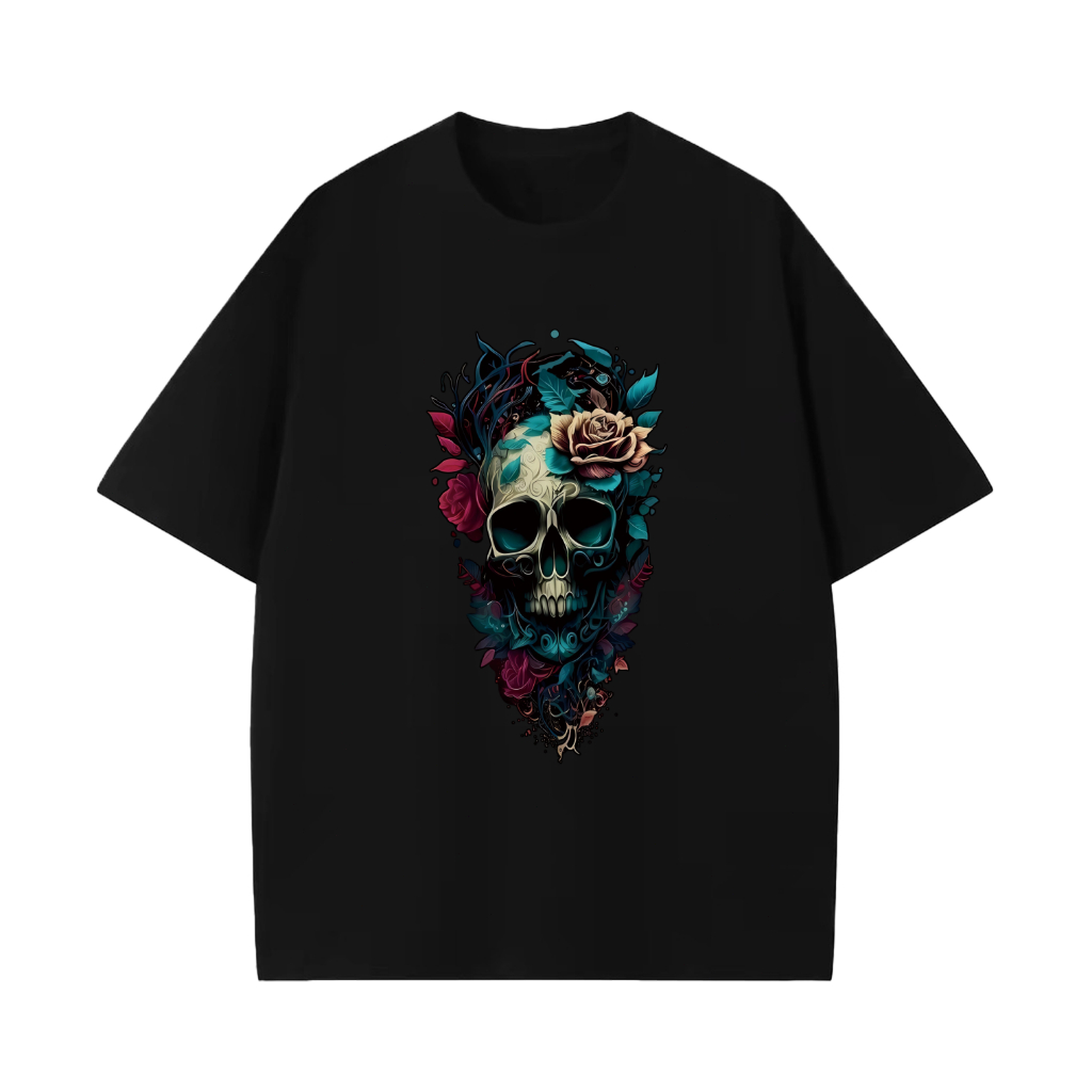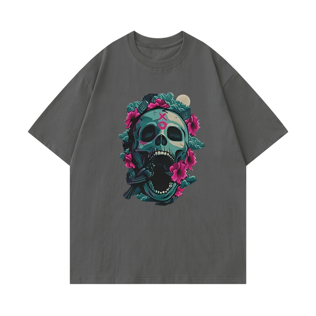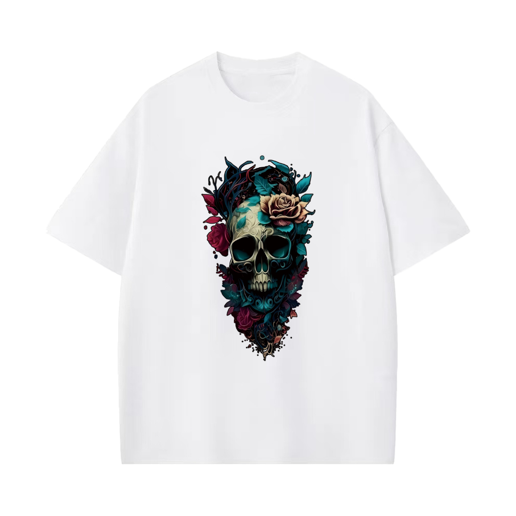 [Camiseta Premium em Algodão Puro]SISI Camiseta Algodão Premium Crânio Manga Curta