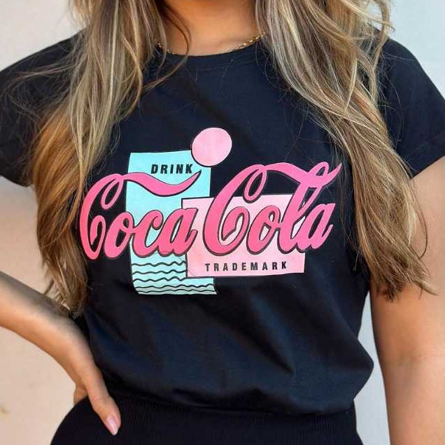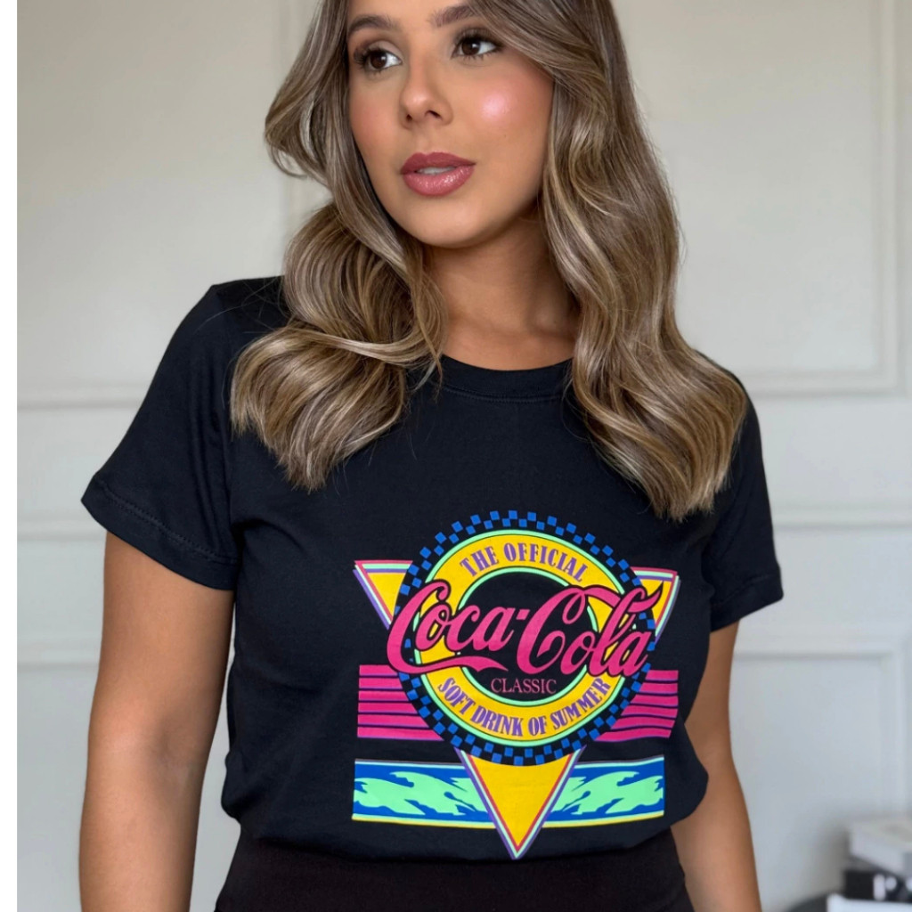 [Camiseta Premium em Algodão Puro]SISI Blusa Feminina Coca Cola T -Shirt 100% Algodão Envio Imediato P AO G3 PLUS SIZE