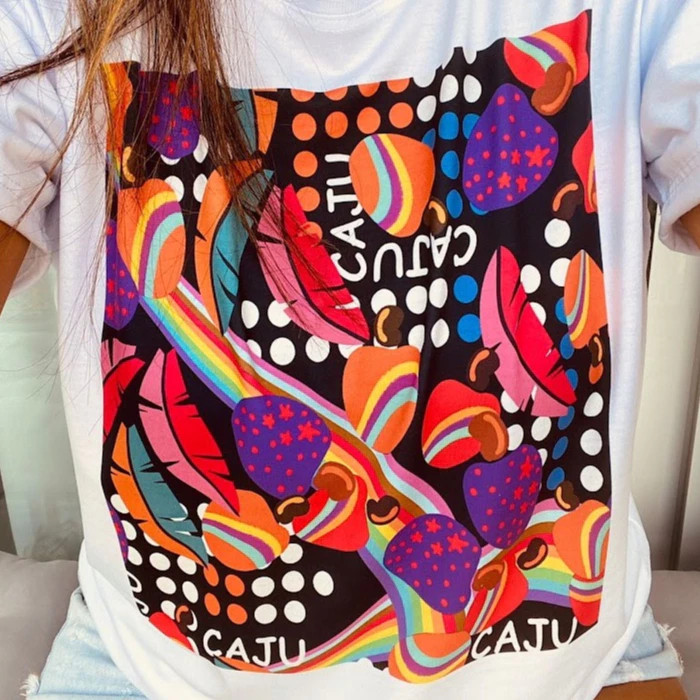 [Camiseta Premium em Algodão Puro]SISI Tshirt Baby Look Frutas Estampada 100% Algodão camisa desenho animado