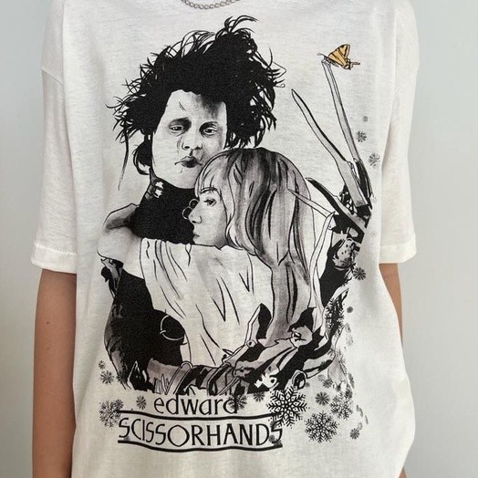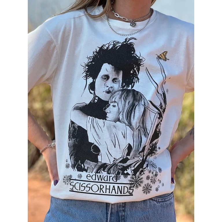 [Camiseta Premium em Algodão Puro]SISI Camiseta Edward Mãos de Tesoura - Branco