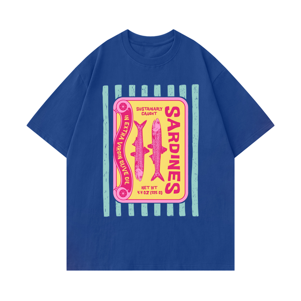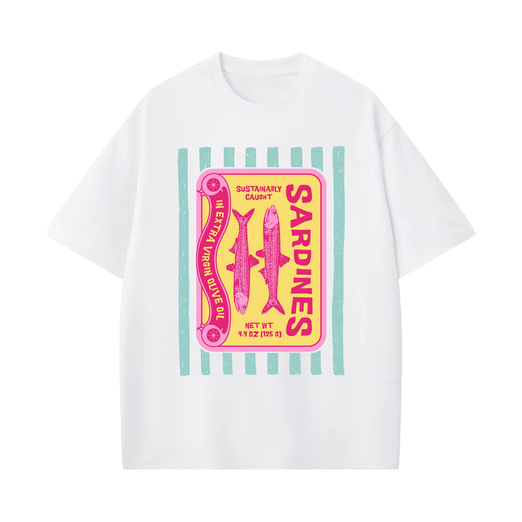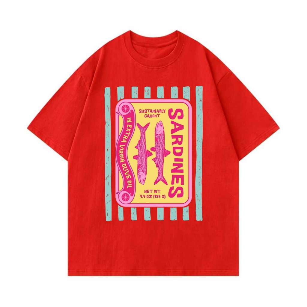 Camiseta Premium em Algodão Puro]SISI Camiseta Feminino Sardinhas de inspiração vintage Blusa Unissex Algodão Premium