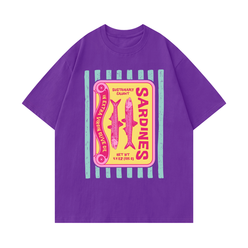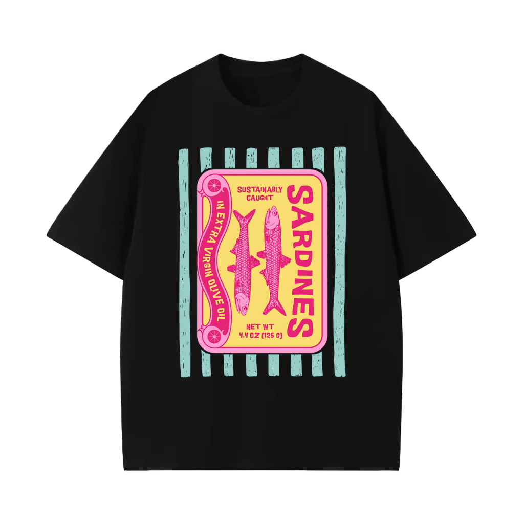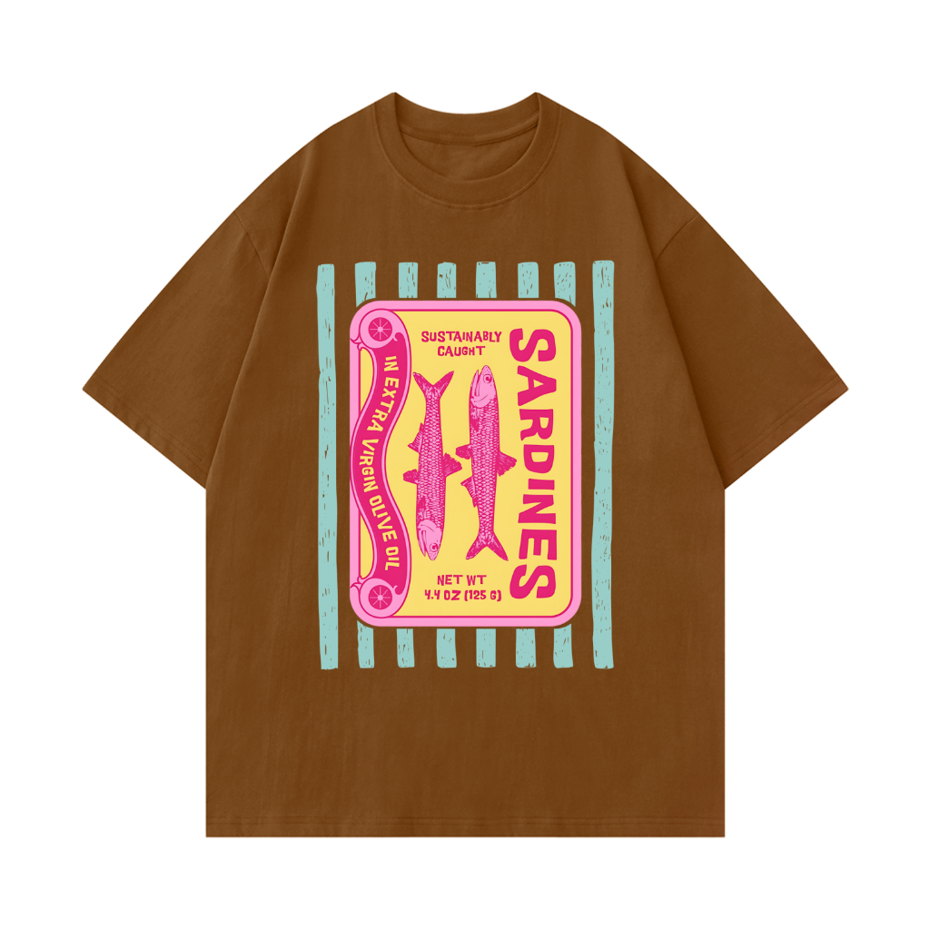 Camiseta Premium em Algodão Puro]SISI Camiseta Feminino Sardinhas de inspiração vintage Blusa Unissex Algodão Premium
