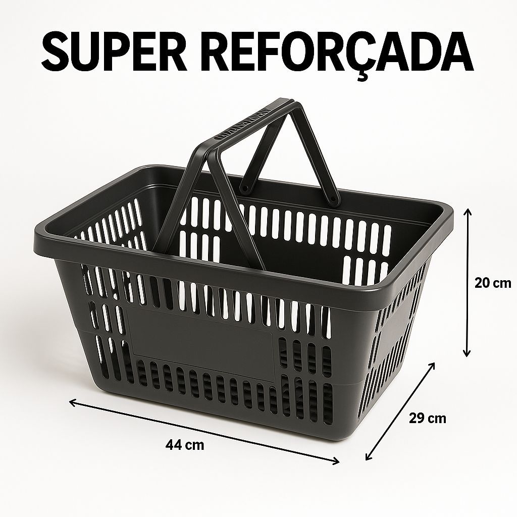 KIT 10 Cestinhas Cesta de Supermercado Plástica Preta 16L Envio Imediato Alça Reforçada Ideal para Lojas, Mercados