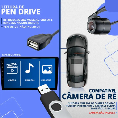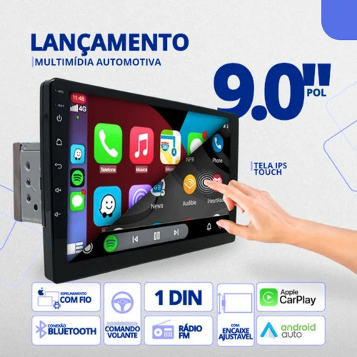 Central Multimídia Mp5 1din 9p Android Auto Carplay C/câmera Preto