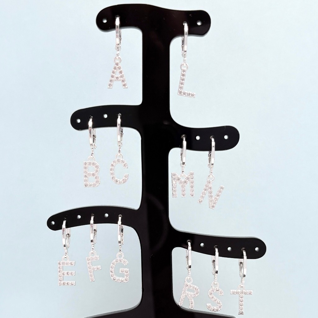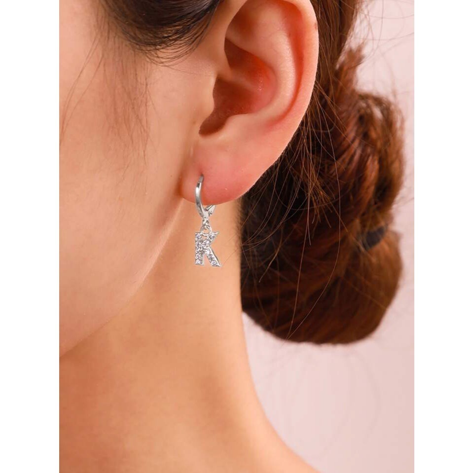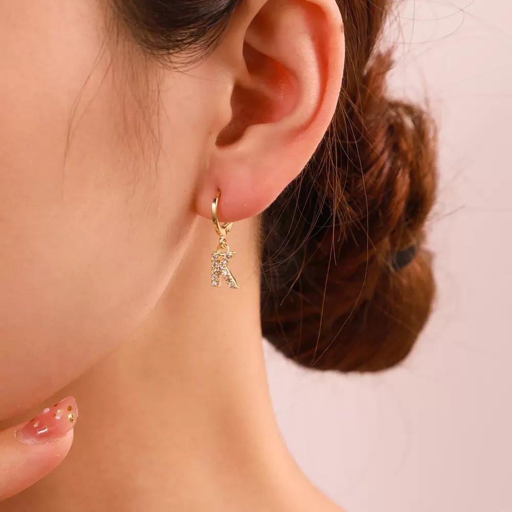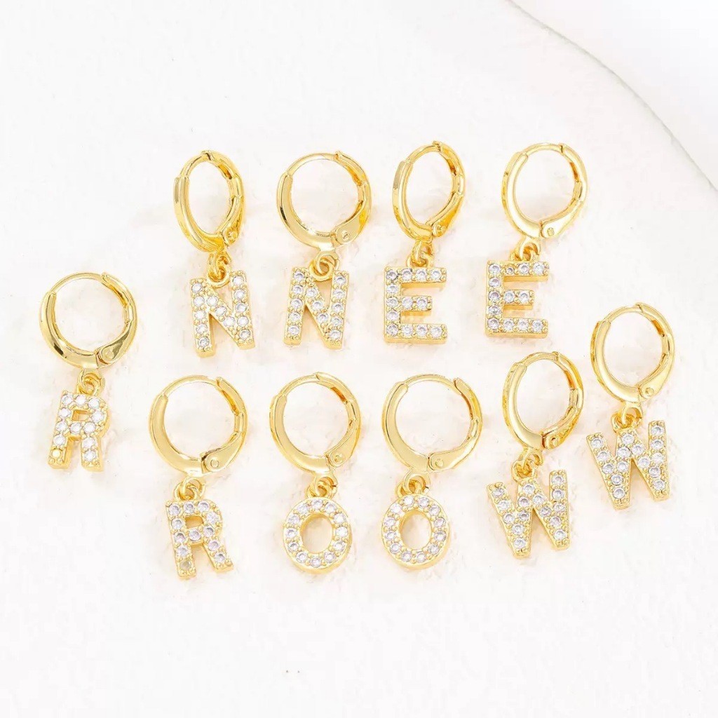 Brincos femininos de luxo da moda com pingente de letra A - Z incrustado com zircônia