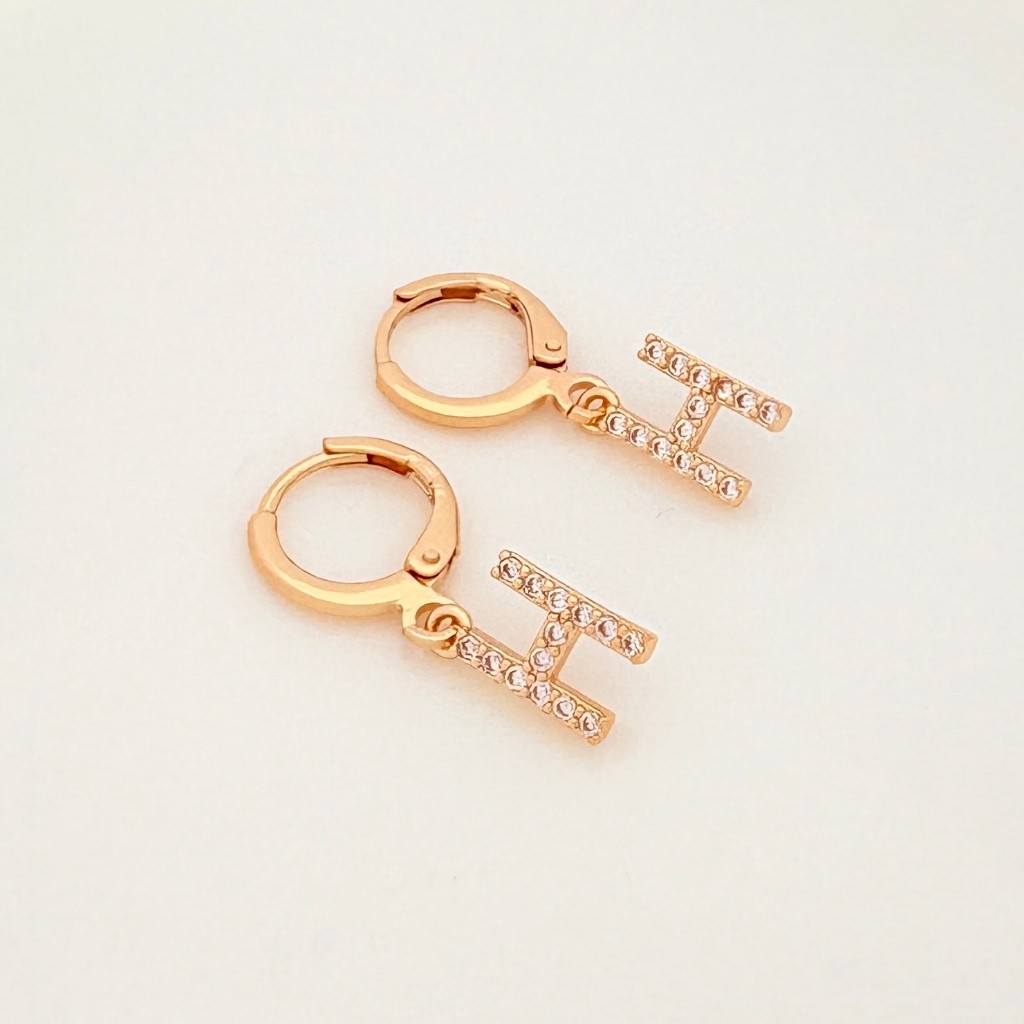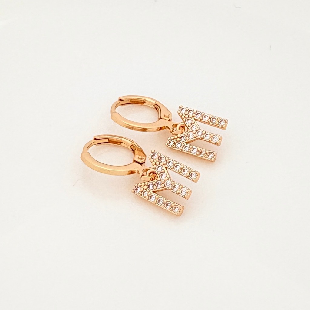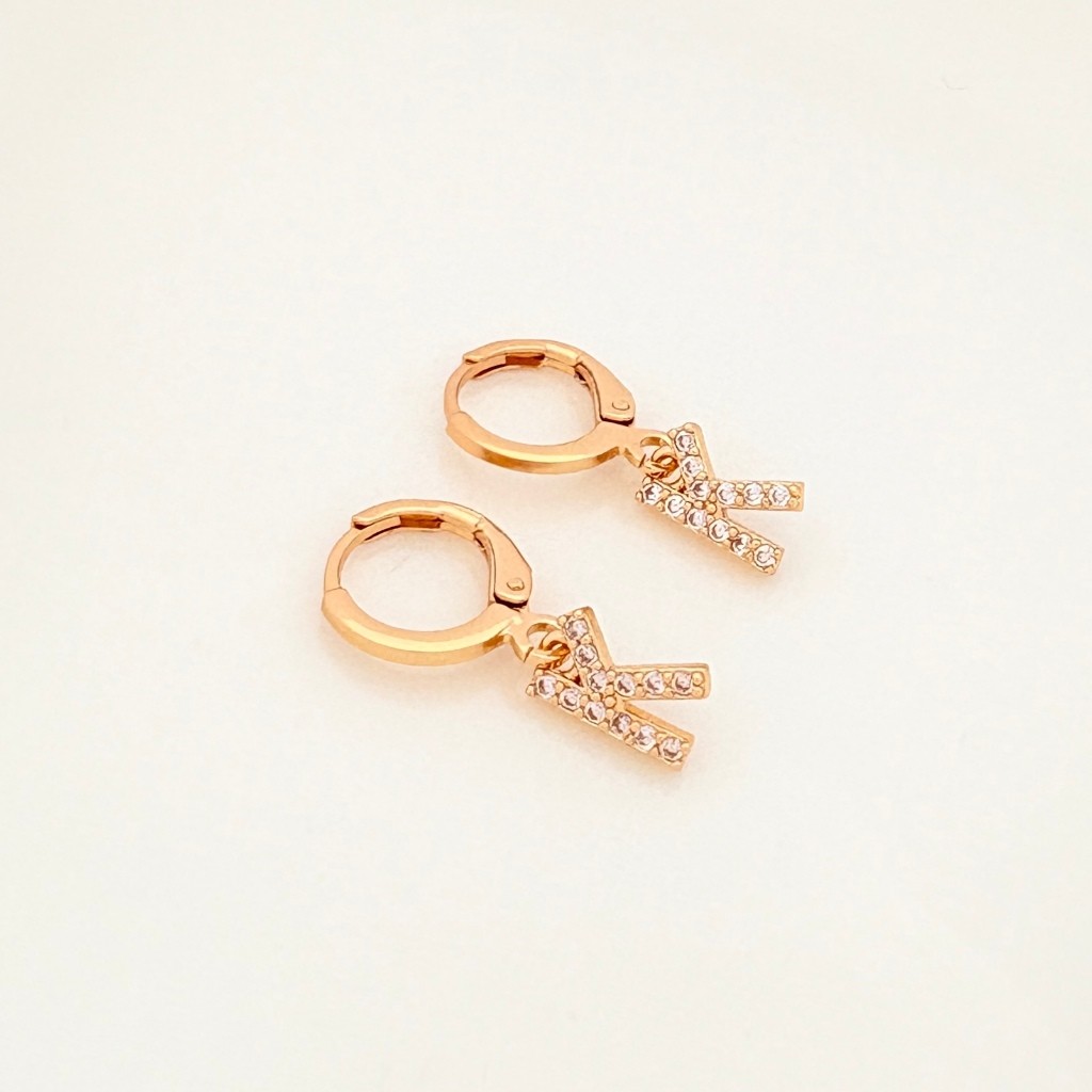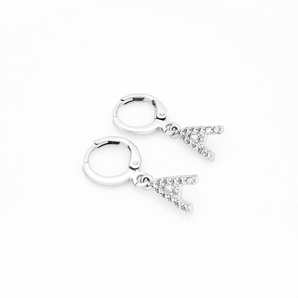 Brincos femininos de luxo da moda com pingente de letra A - Z incrustado com zircônia