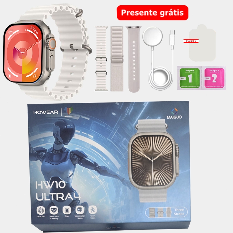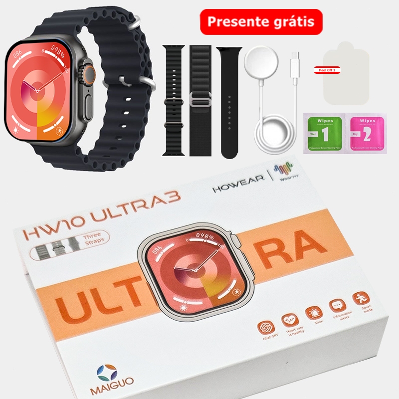 Relógio Inteligente Smartwatch HW10 Ultra 4 3 Tela Amoled apoiar NFC IP67 à prova d'água