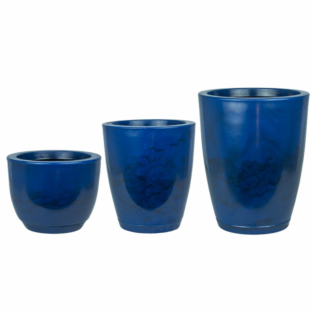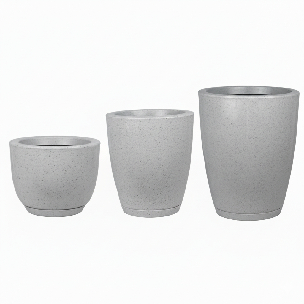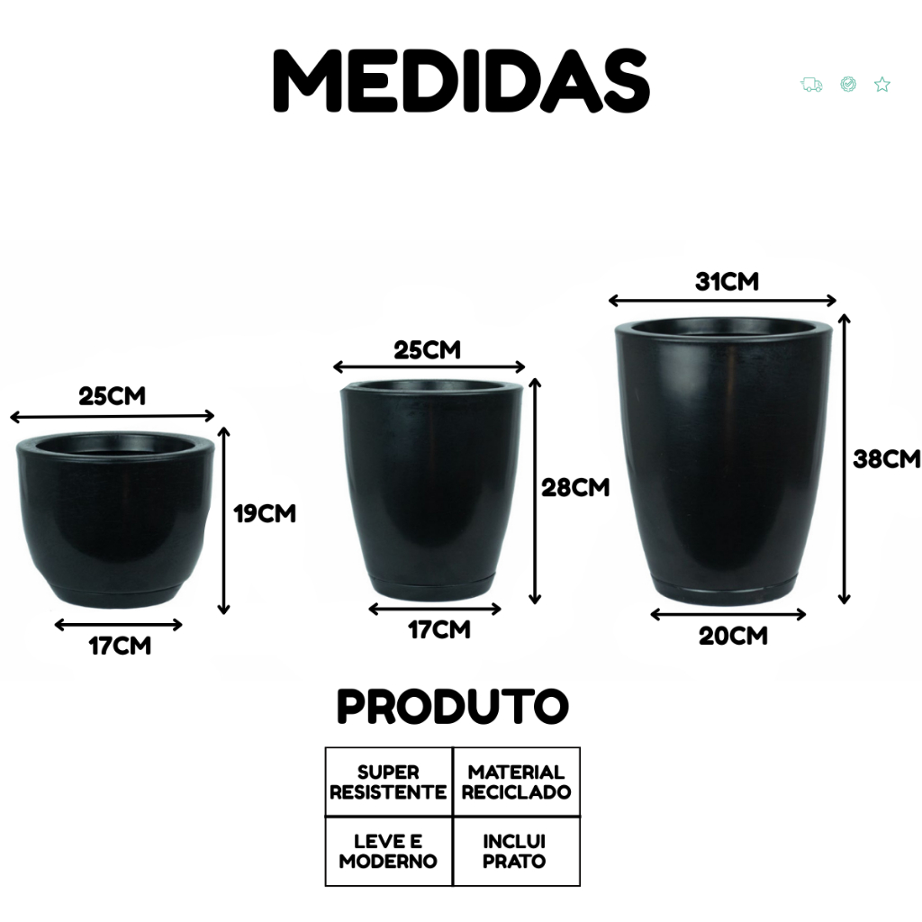 Kit 3 Vasos para Plantas Polietileno Grande Coluna Bojo Polido Liso Luxo Moderno Prato Jardim Casa