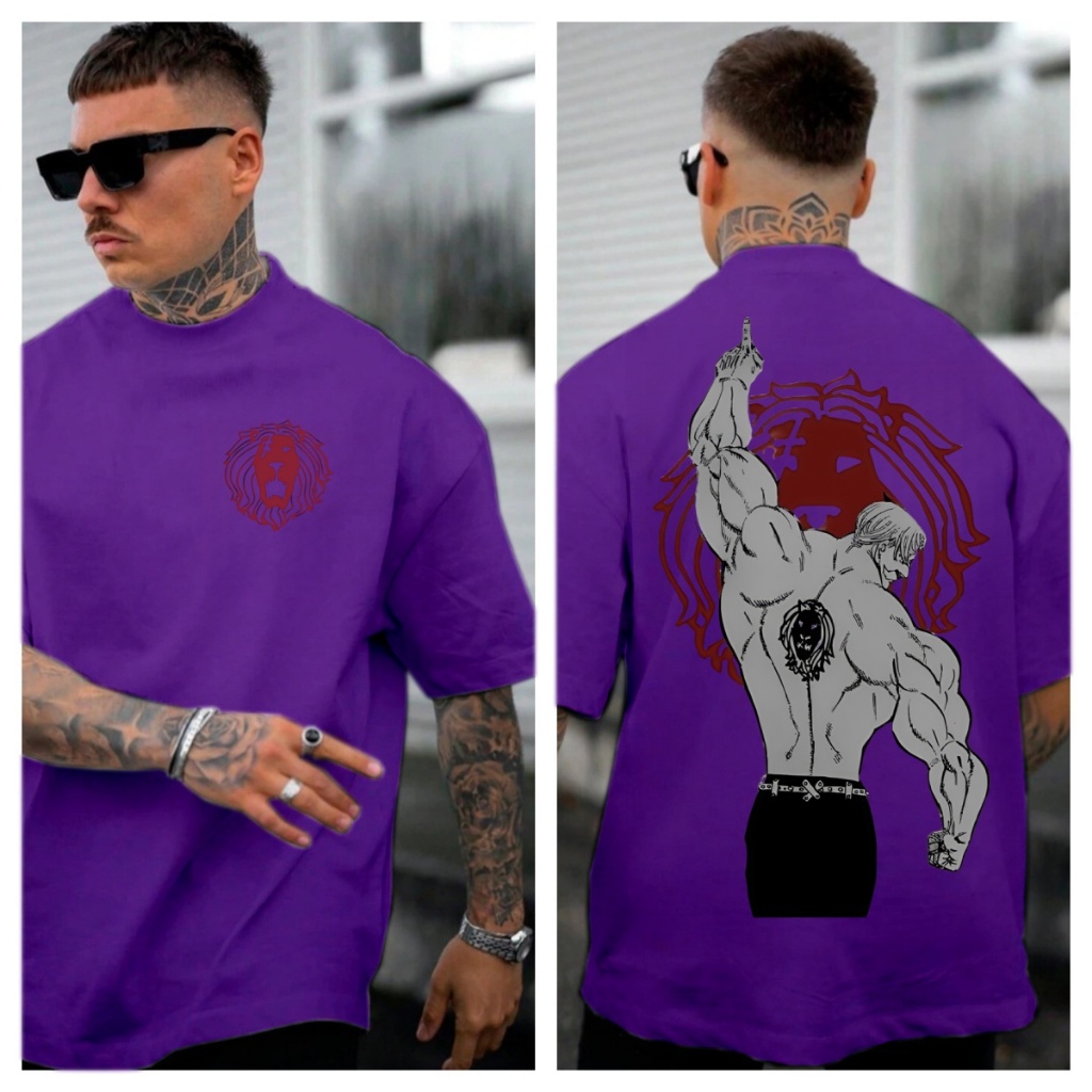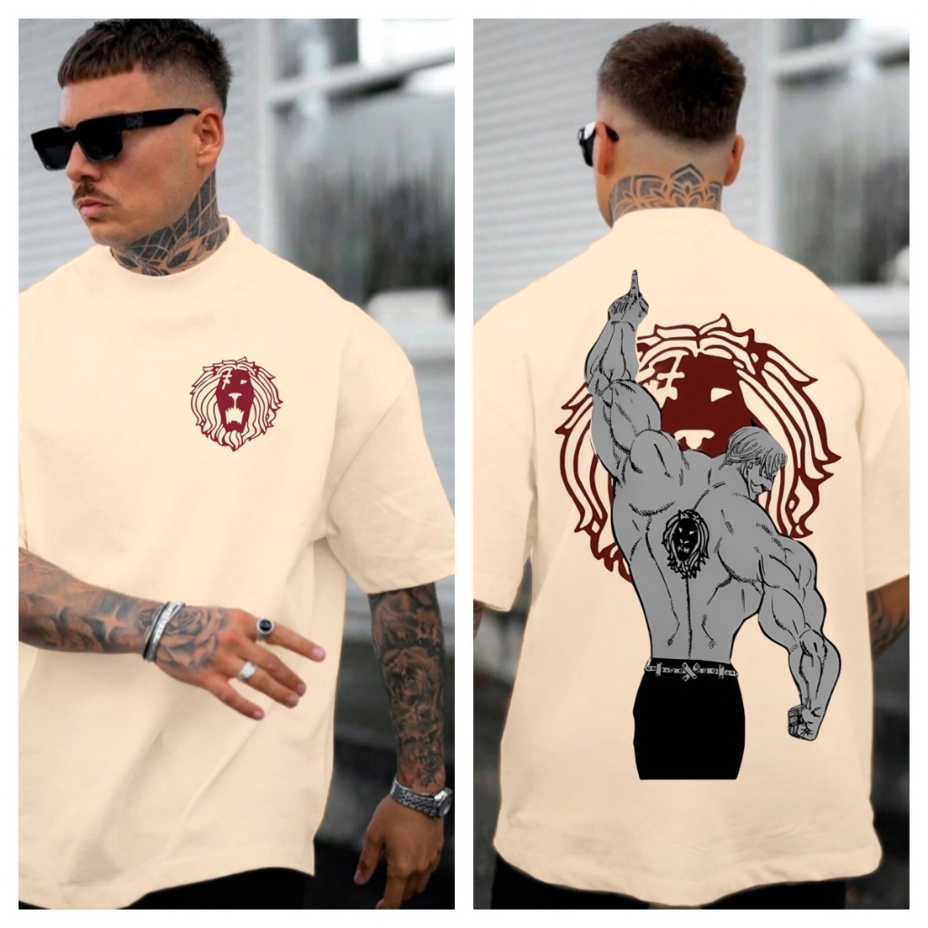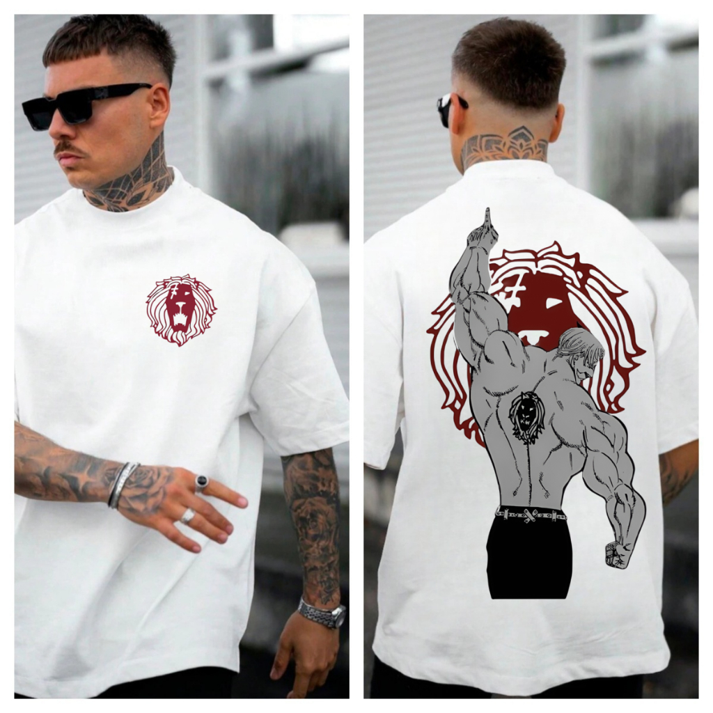 [Camiseta Premium em Algodão Puro]GXG Camiseta Oversized Masculina Nanatsu no Taizai Série Anime Escanor 7 Pecados Capit