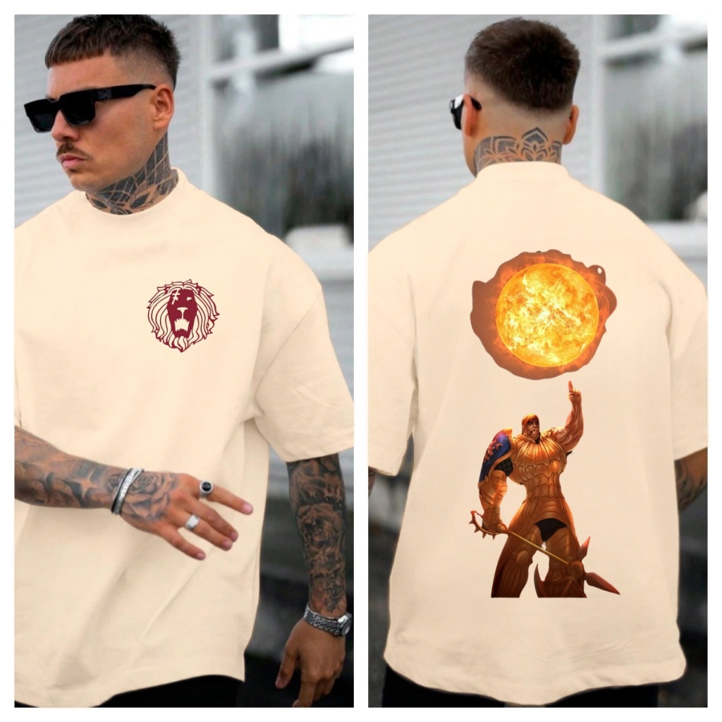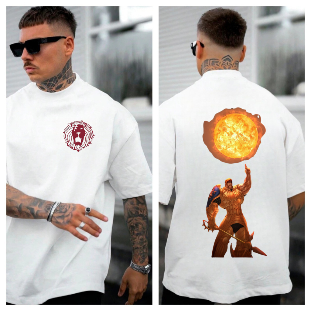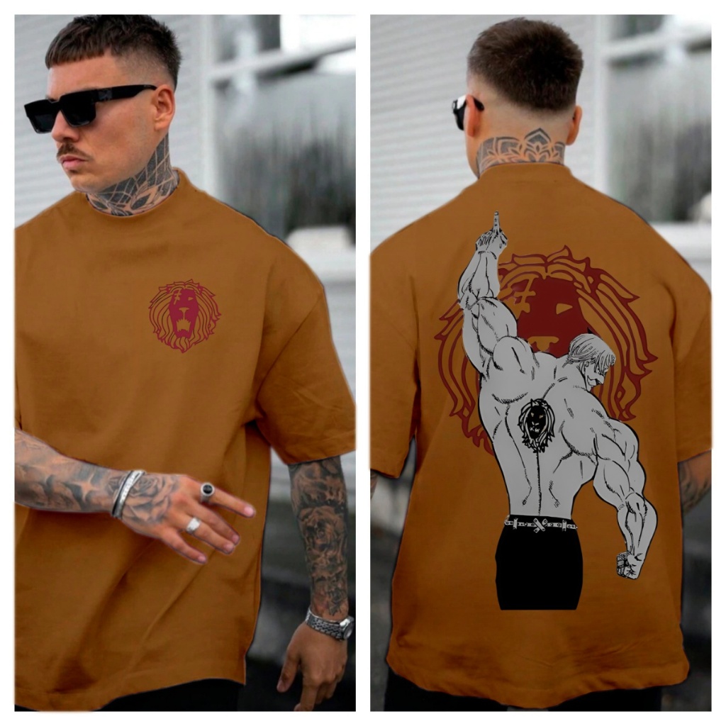 [Camiseta Premium em Algodão Puro]GXG Camiseta Oversized Masculina Nanatsu no Taizai Série Anime Escanor 7 Pecados Capit