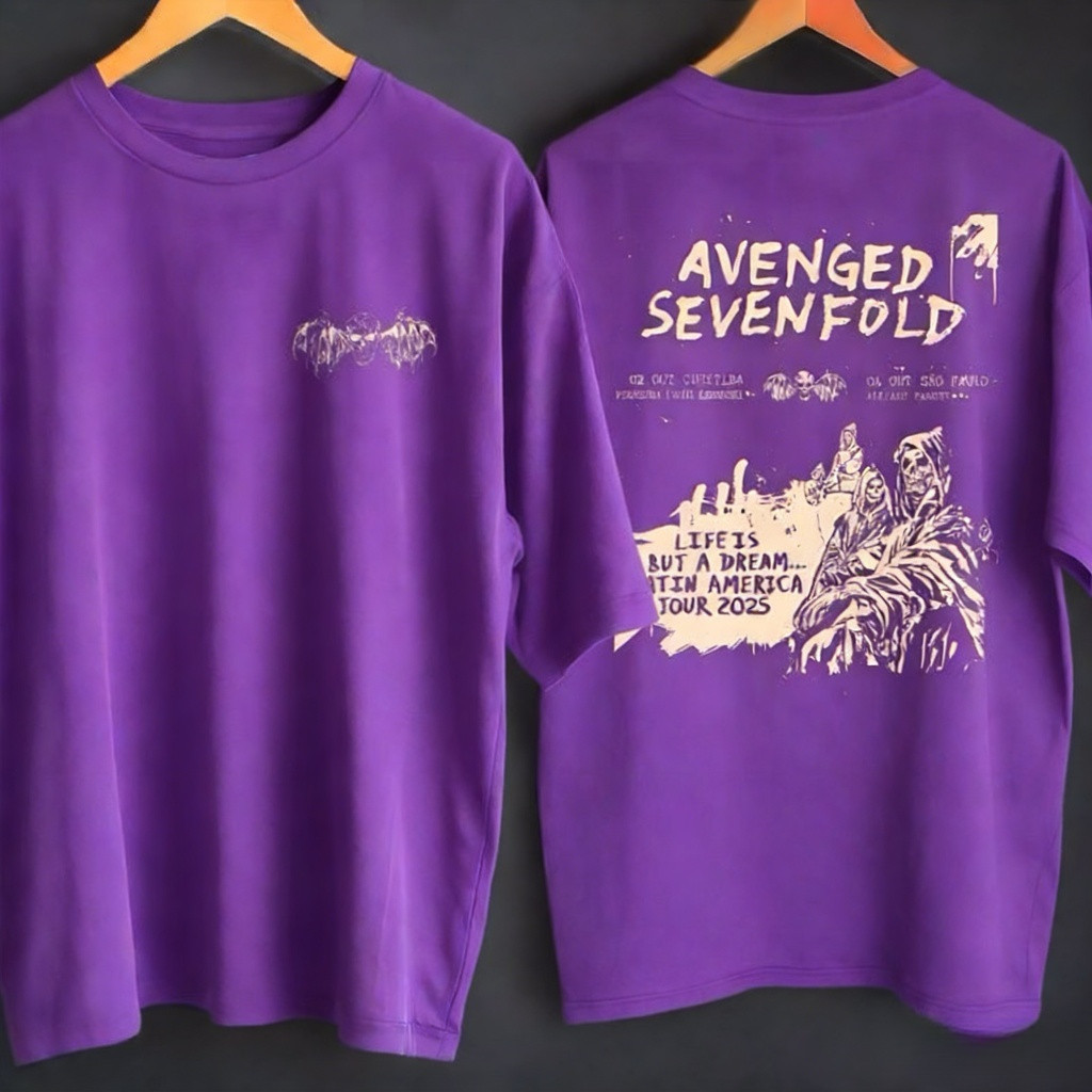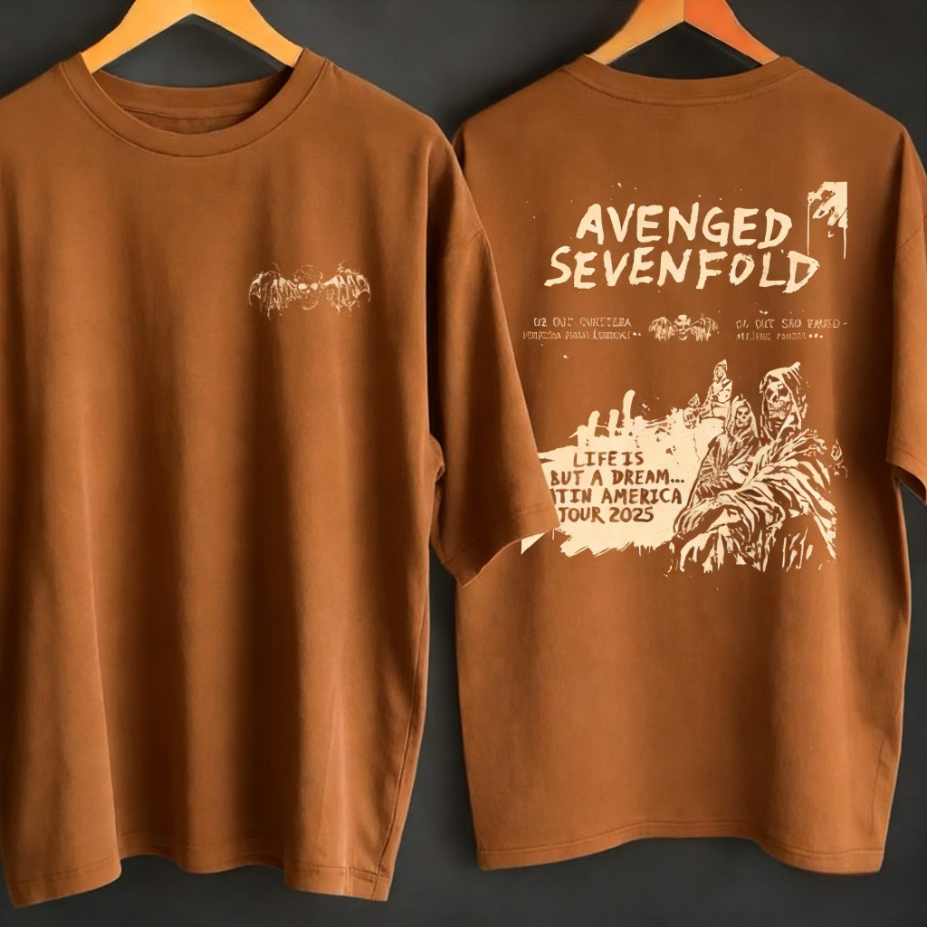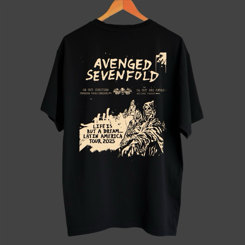 [Camiseta Premium em Algodão Puro]GXG Camiseta Oversized Avenged Sevenfold LIBAD Tour Latin America