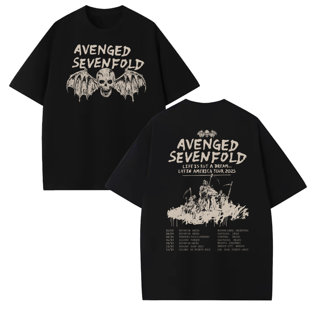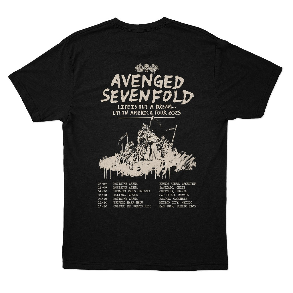 [Camiseta Premium em Algodão Puro]GXG Camiseta Avenged Sevenfold Life Is But A Dream Latin America Tour 2025 A7X Deathba