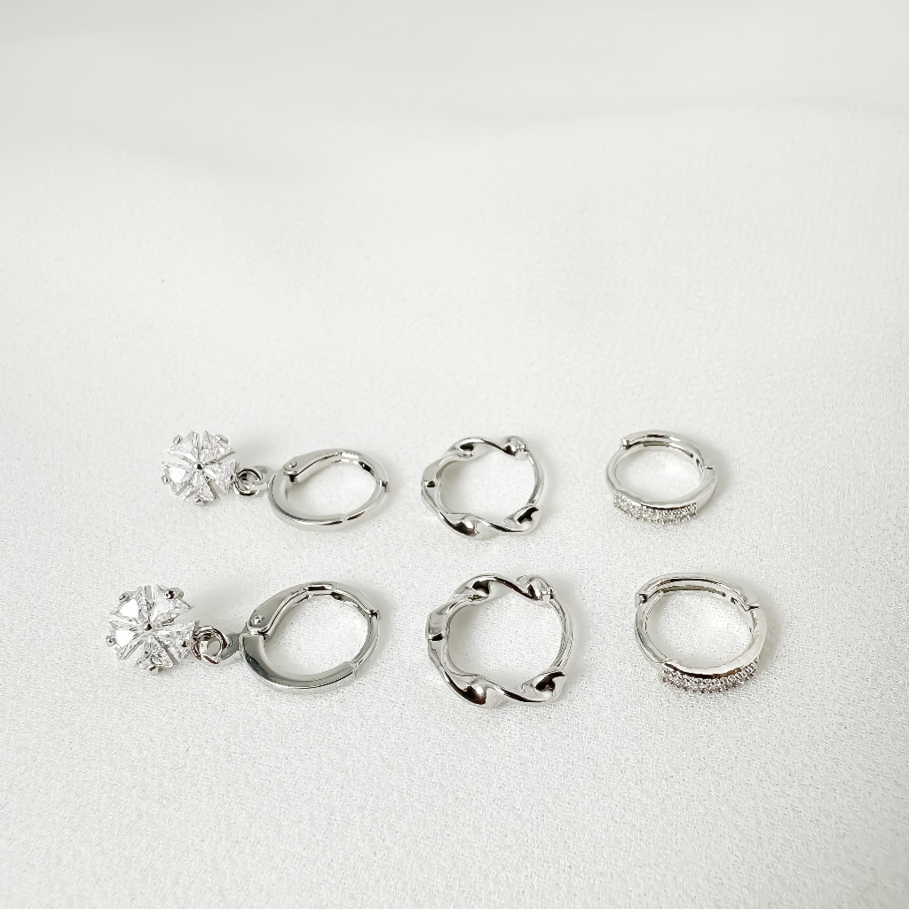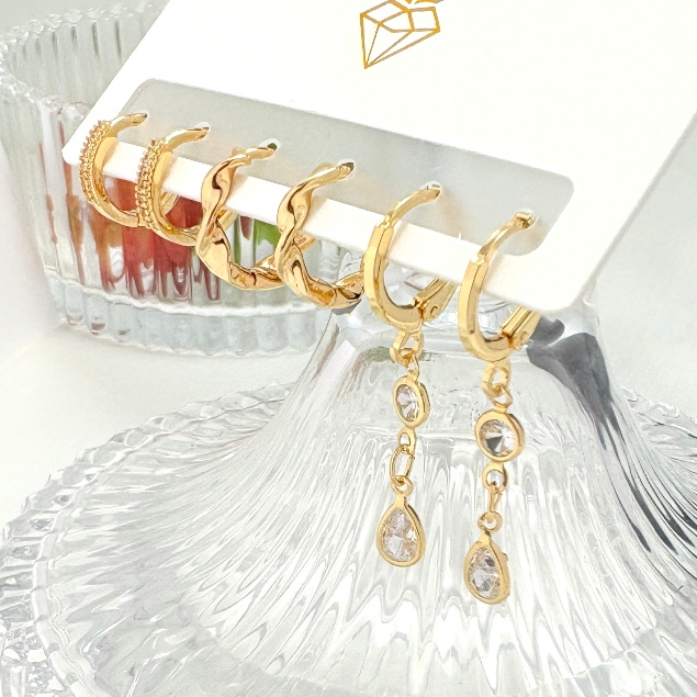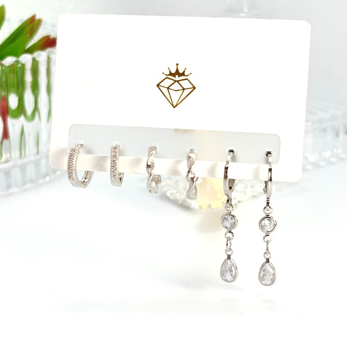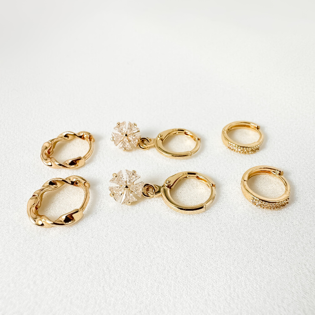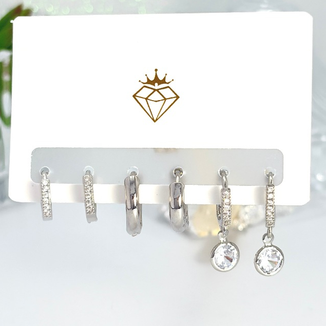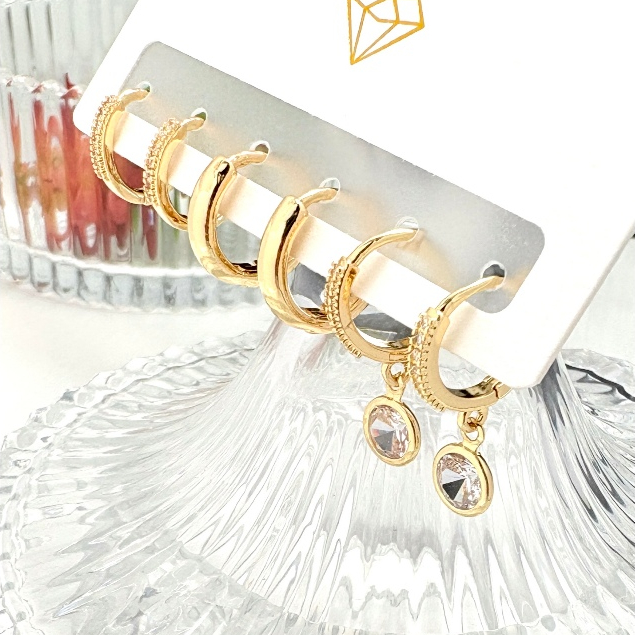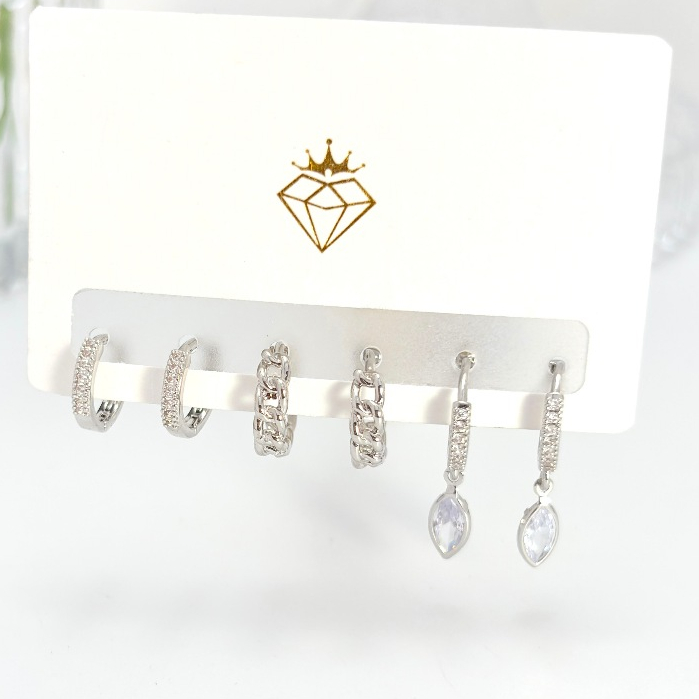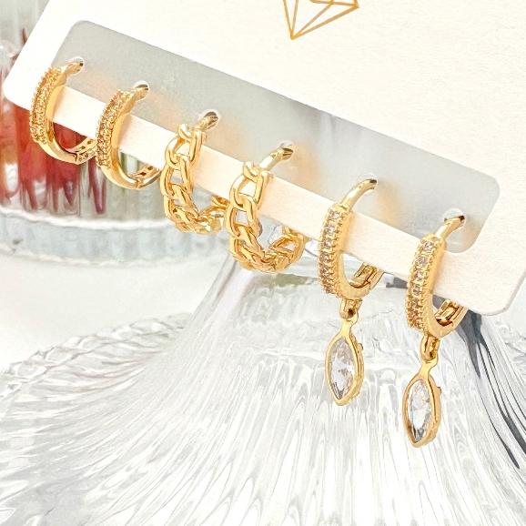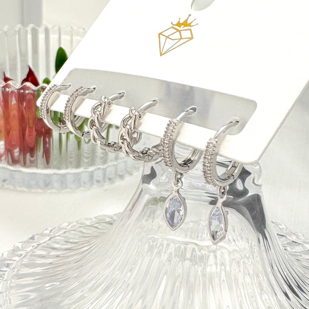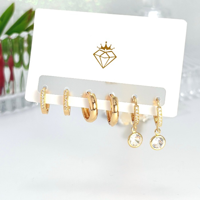 Brincos Conjunto kit 3 pares feminina e banhada ouro 18k e parata 925