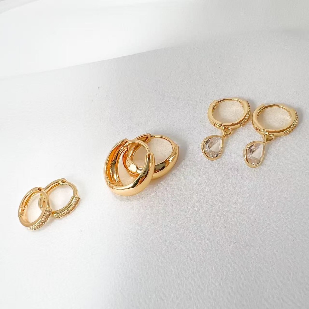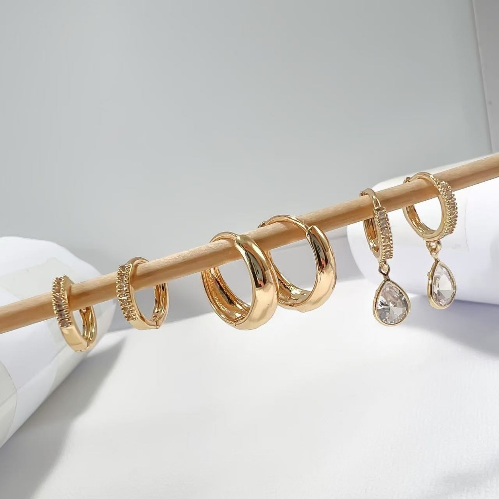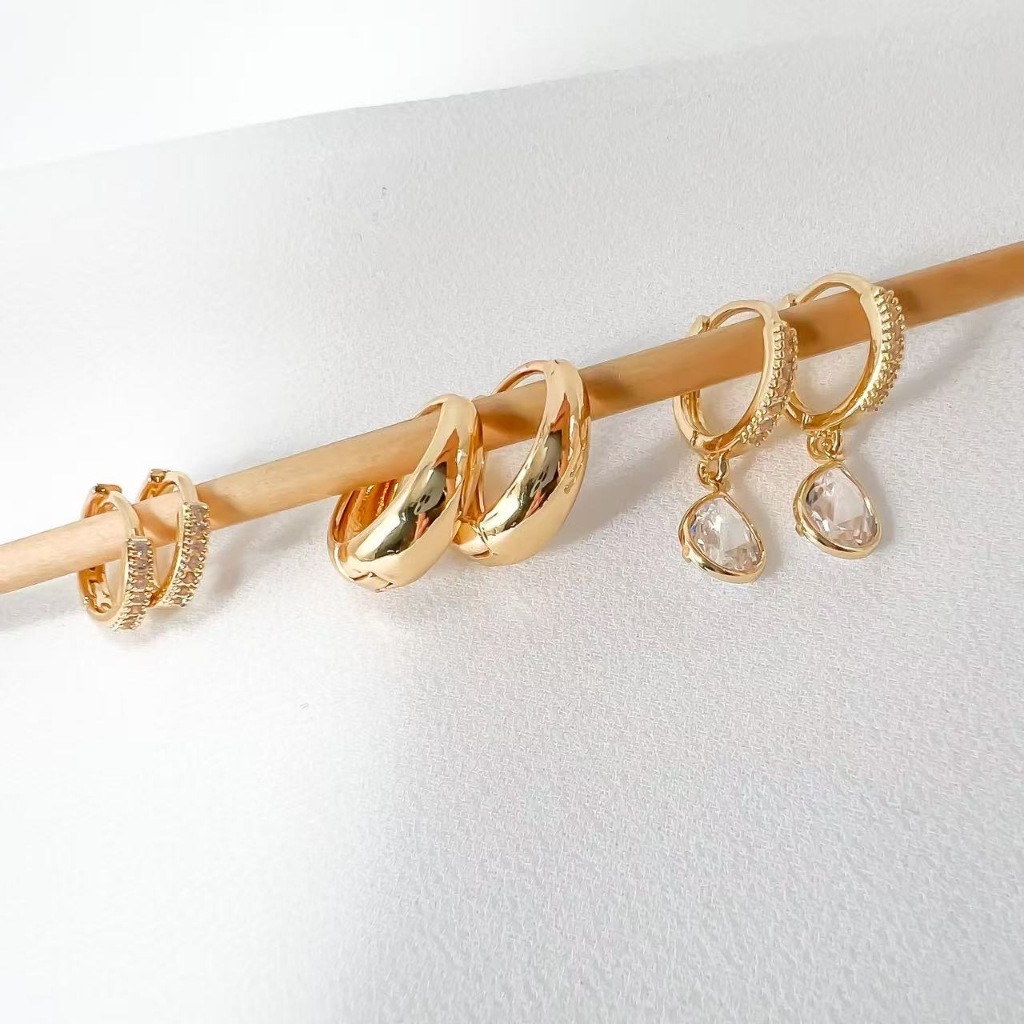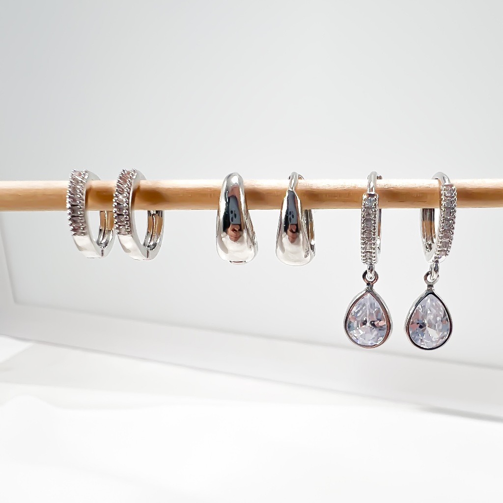 TRIO DE BRINCOS Argola Ponto de luz Argola Cravejada, Argola Meia lua Banhada em Prata 925 e Ouro 18k.